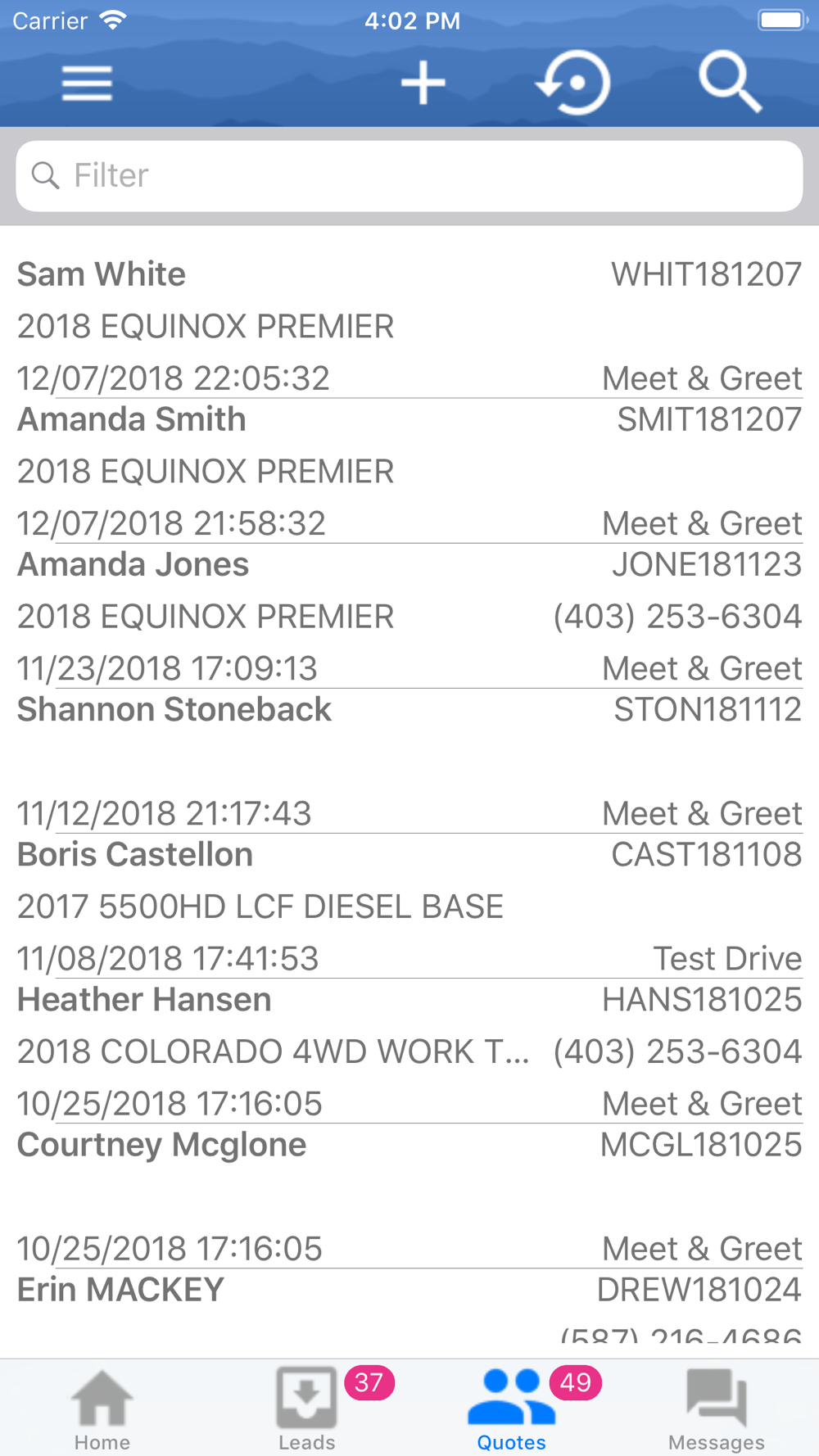 Not sitting at a computer? Get alerts for your customers visiting the service department... with insights into whether (and why) they may be entering into a purchasing cycle. Receive notifications for new leads and reply to 'stop-the-clock'. Schedule activities, meetings and appointments that remain visible to your managers without leaving the DMS. Need to get some input from someone at the dealership while you're on a demo drive? Use the v10 Chat to instant message your manager for timely responses.