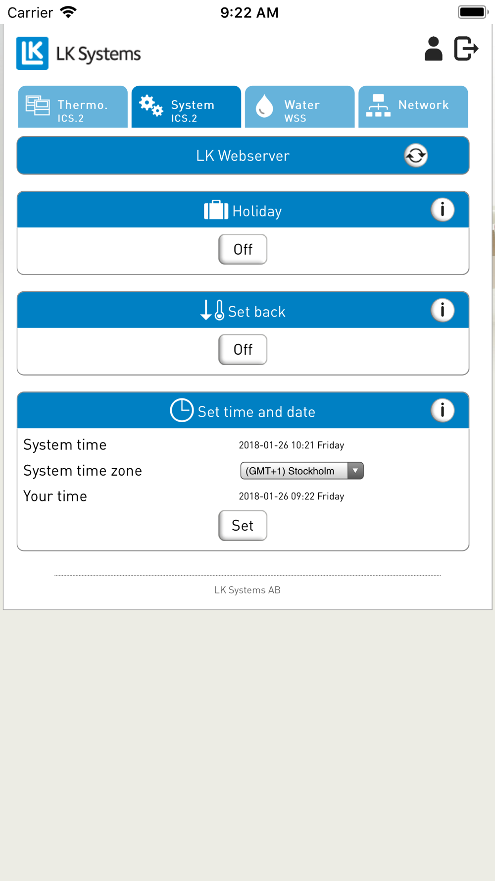 the LK Webserver you can connect LK Room Temperature Control ICS.2 and LK Water Safety System