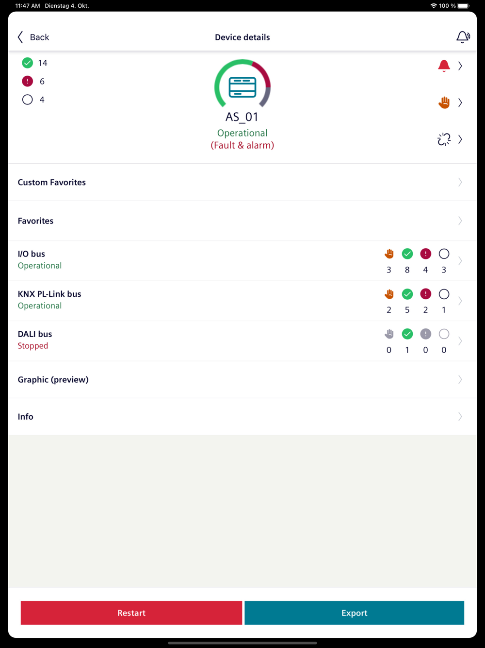 6) Dashboard for a fast overview of the device commissioning status.