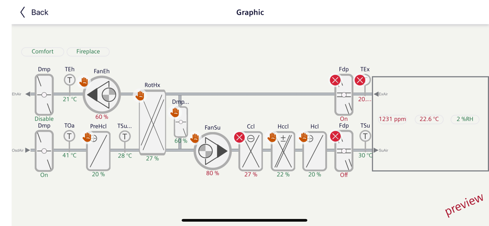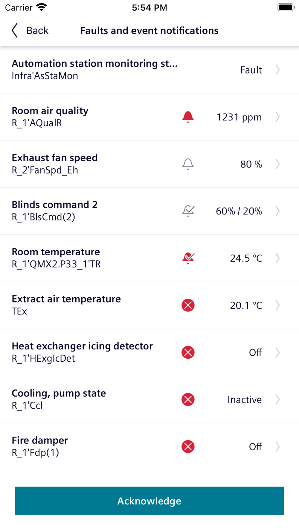 11) Indication of data points in alarm including reset/acknowledge for the DXR2… or PXC3.E.. or PXC4/5/7..