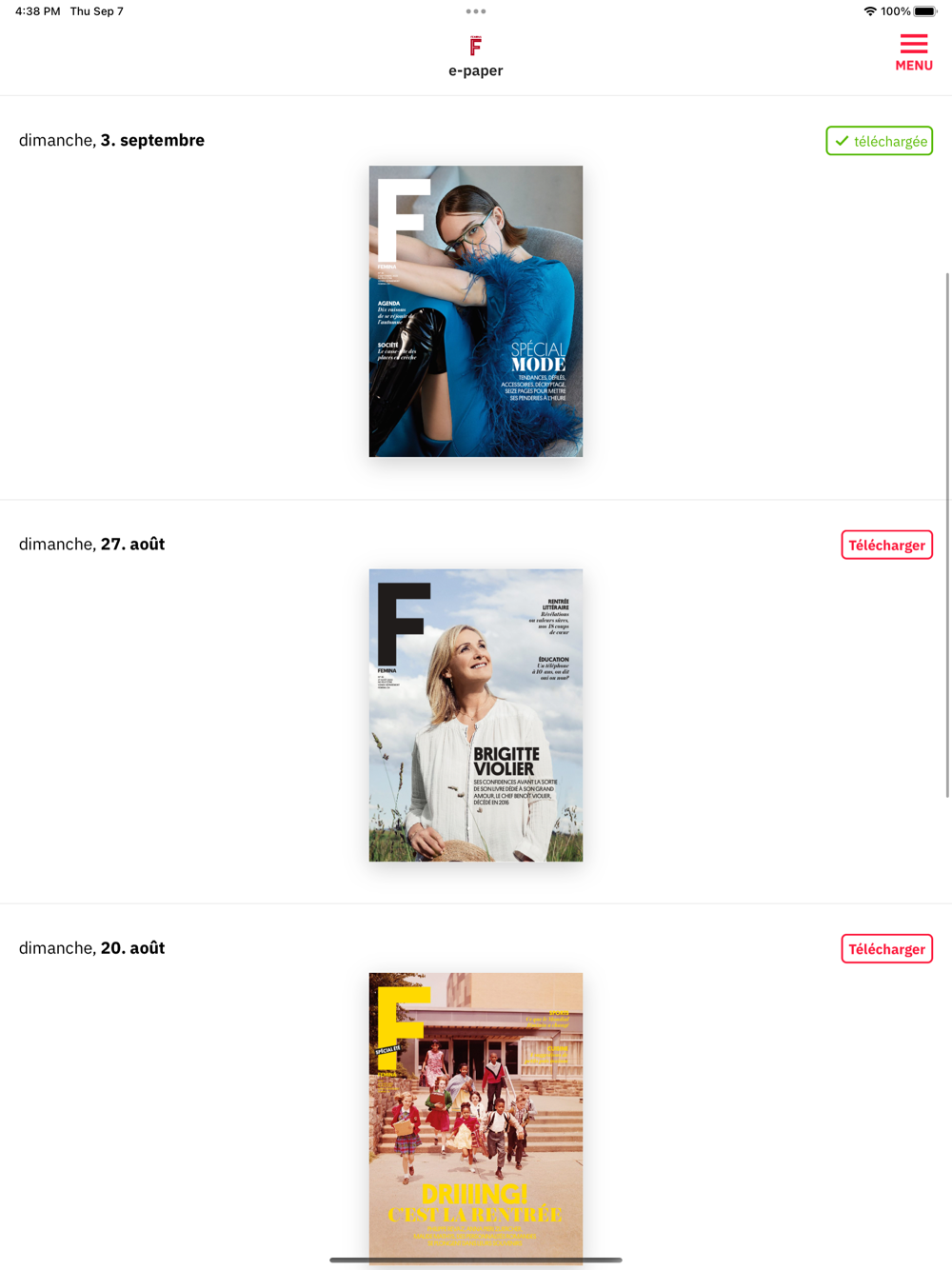Mode, voyage, beauté, actu : l'application reprend l'intégralité de votre magazine.