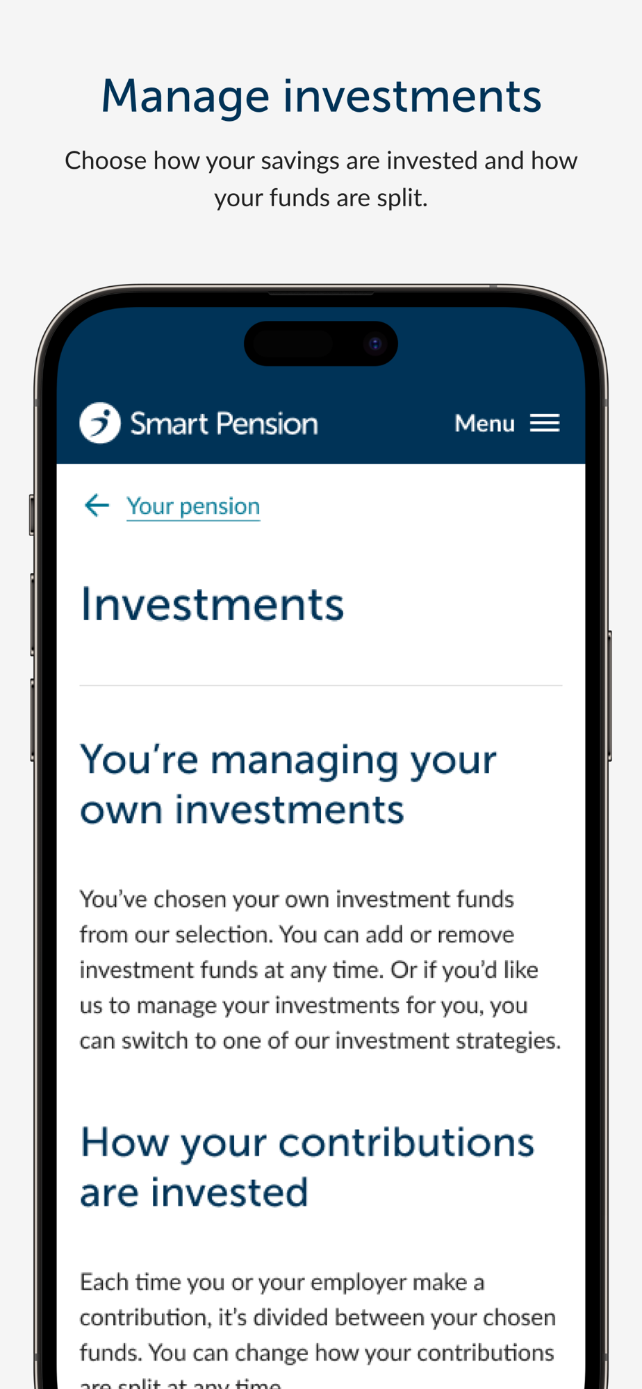 The Smart Pension Employee App will transform the future of pension saving for a new generation. It allows you to pick and choose the most suitable investment funds, track your pension balance in real time on your phone and increase contribution levels when you can afford it. Engaging you with your pension like never before!