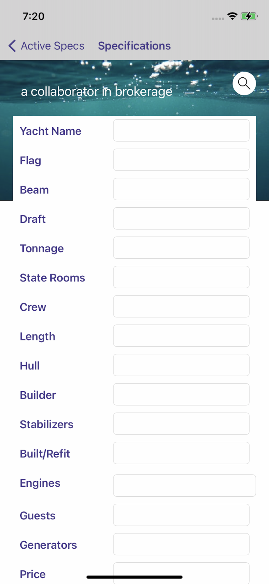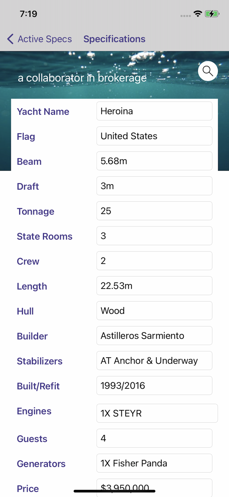 Store yacht data on device - during broker visits to shows, or @ private viewings;