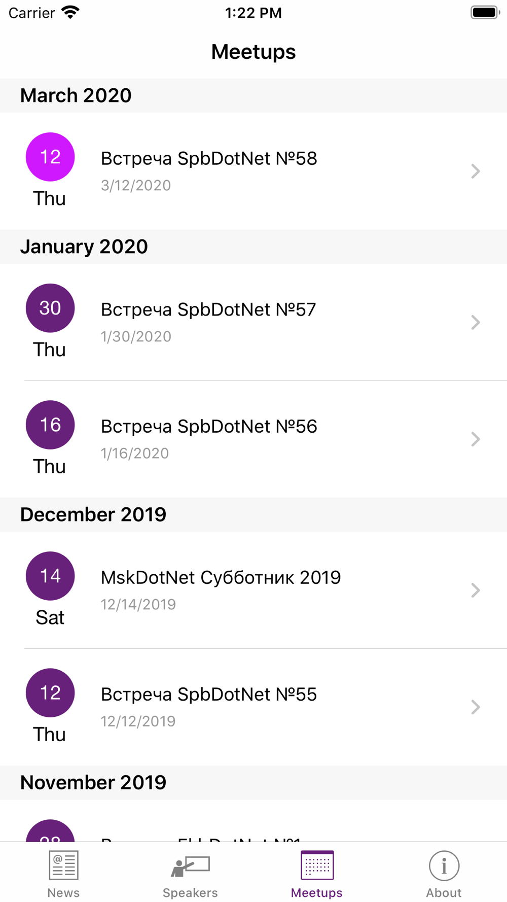 · Meetups list