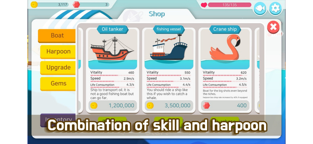 - Find out your unique voyage method to race to the end of the ocean, by using well-combined spear attributes and fish skills.