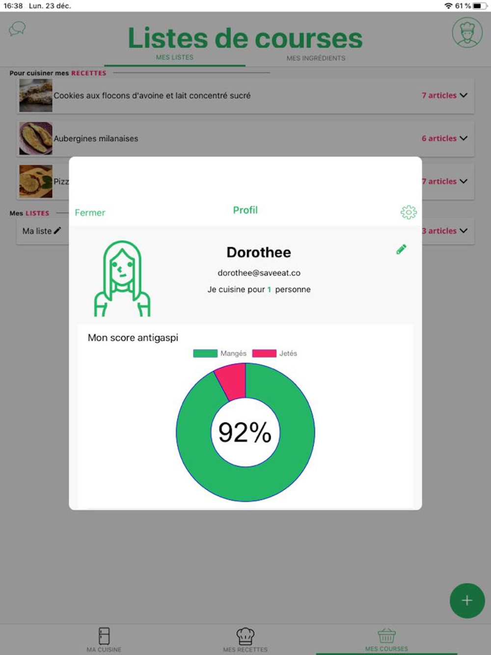 Chaque ingrédient ajouté dans ta cuisine est automatiquement associé à sa date de péremption approximative pour t'aider à organiser tes repas. Tu pourras aussi recevoir des rappels pour manger tes aliments dans les temps et ne plus rien jeter.