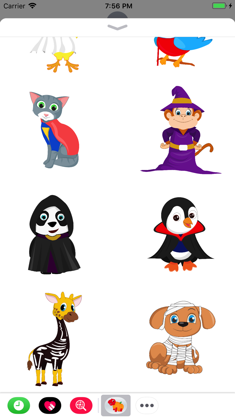 * A drawer should pop up with a list of your iMessage compatible apps. If you do not see Halloween Animals right away, keep scrolling to the right until you find it!