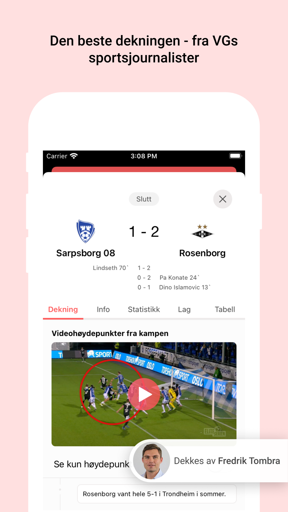 Våre journalister gir deg den beste dekningen av kampene som betyr mest for deg. Oppdaterte sportsresultater og kommentarer gir deg følelsen av å være til stede når det skjer! Følg dine favorittlag og motta pushmeldinger ved viktige hendelser.