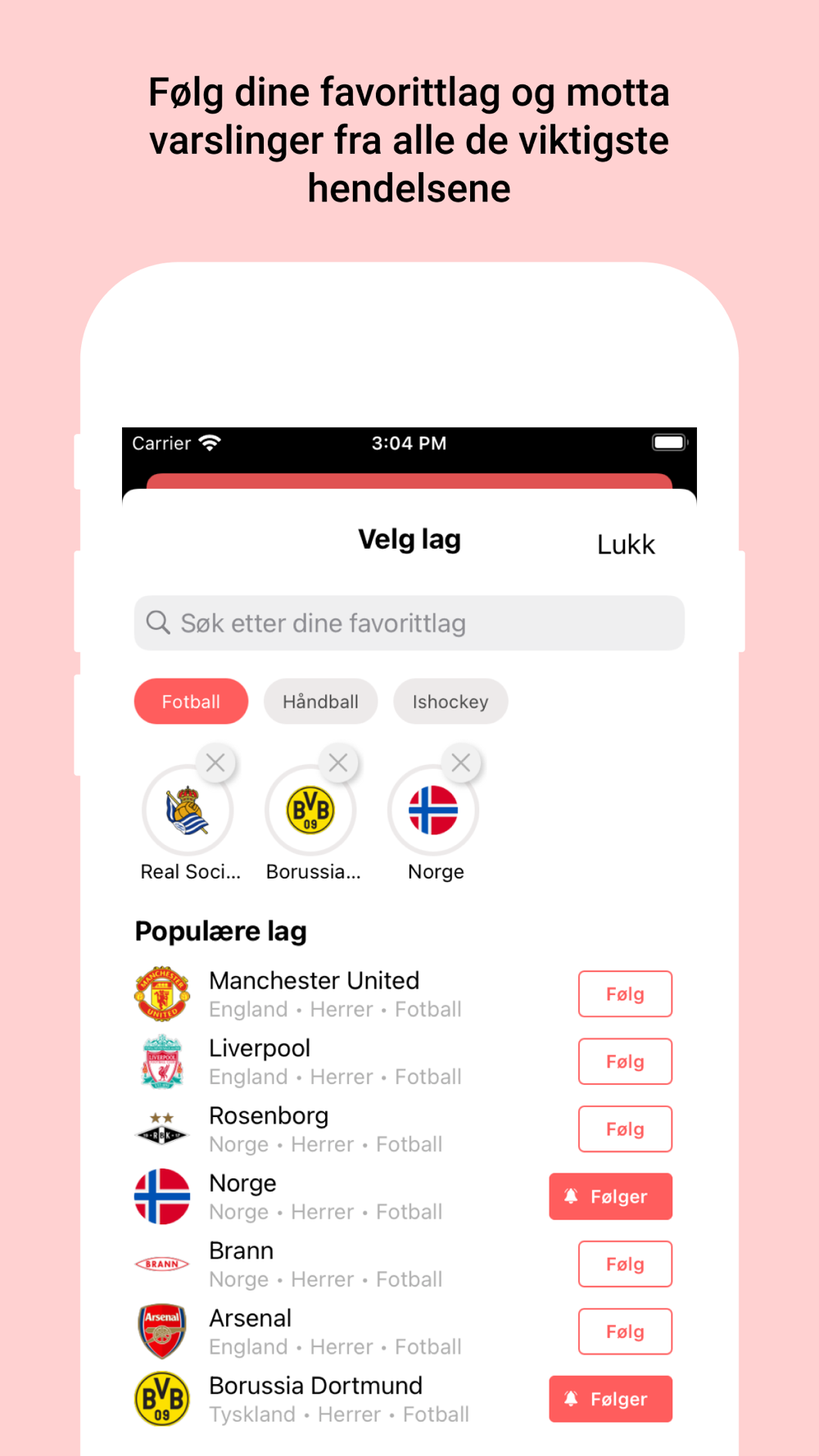 VG Live appen dekker per i dag fotball og vi jobber fortløpende med å forbedre vår dekning. Det vil dukke støtte for flere typer idretter på sikt, i tillegg til dypere statistikk, sportsnyheter og annen funksjonalitet rundt dine favorittlag.