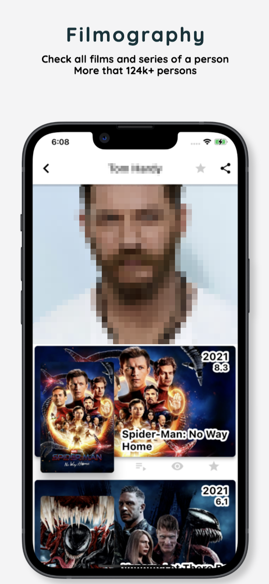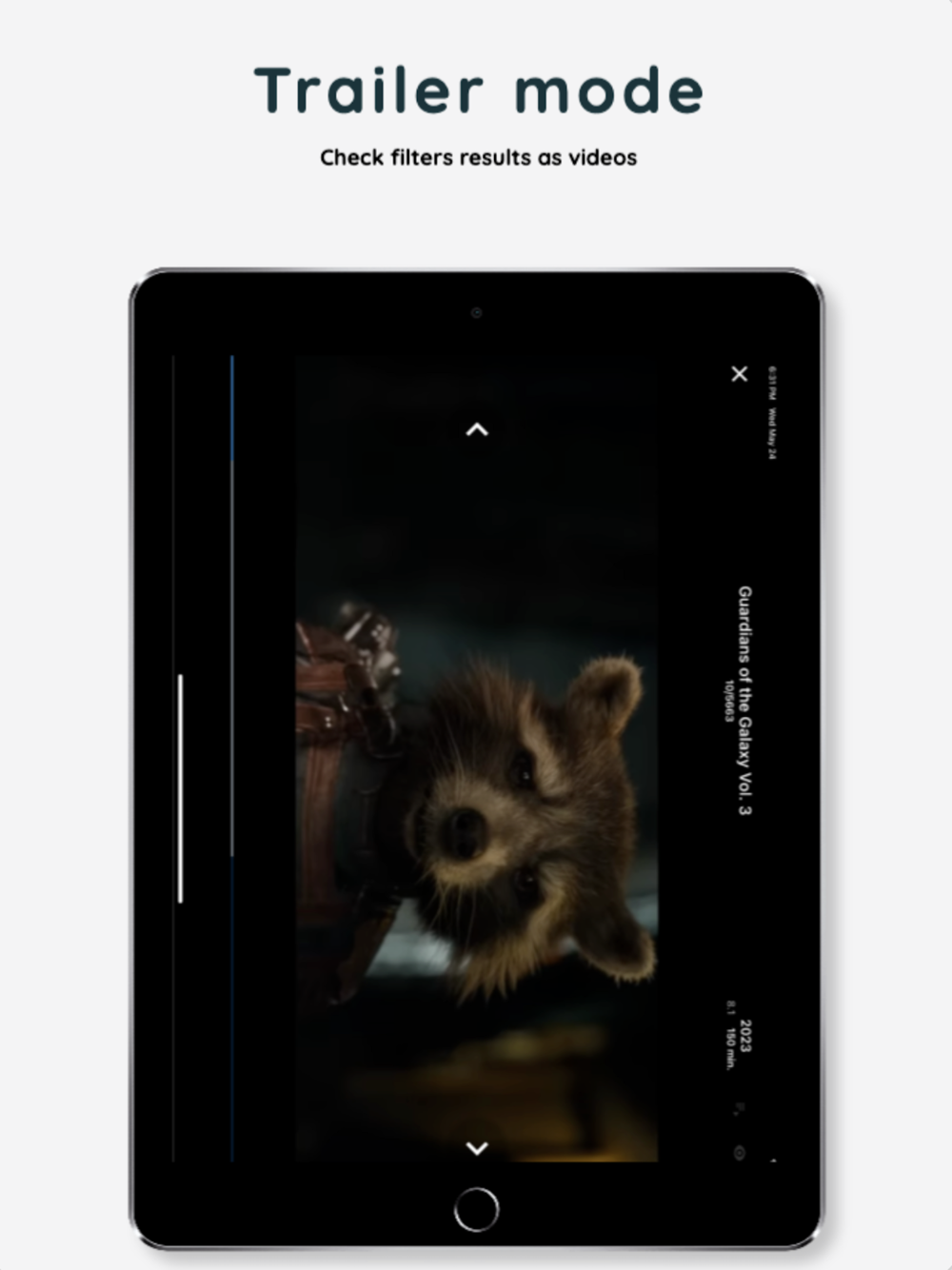 The fundament of app is simple and convenient search for movies and series by genres or collections. The main difference between the application is Trailer mode, it's the ability to search movies when viewing trailers of a specific genre or collection, reminiscent of watching trailers to new movies before the session in the cinema. At the same time there is a possibility to view the complete information of all films. Selected movies can be added to your profile's collections: watchlist, seen and bookmarked list from list and pages. You also can check filmography of more then 170 000 persons, actors and directors.