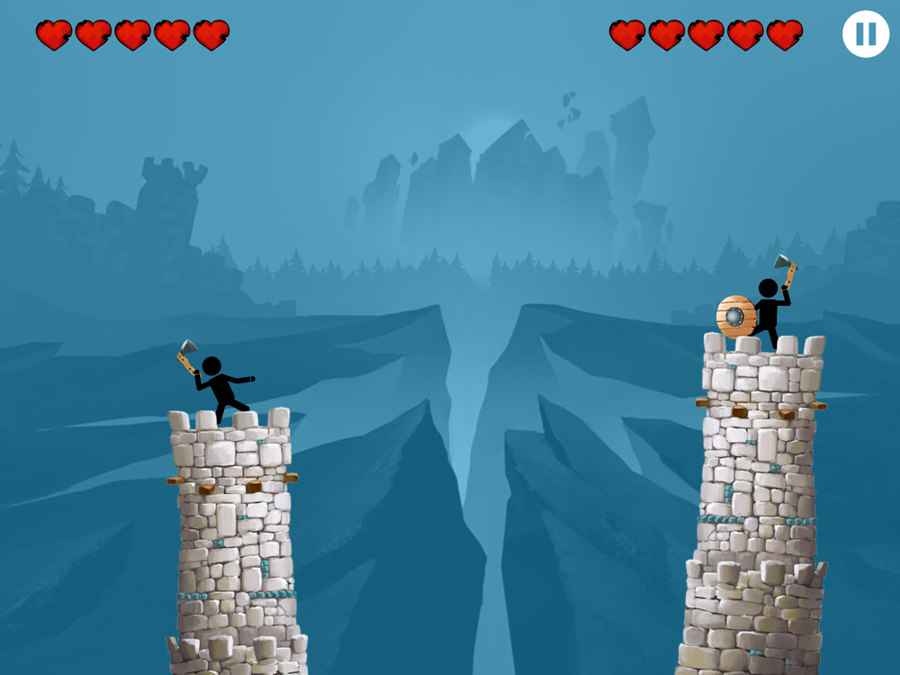 Each player is on his turret and you need to hit an ax in your opponent before he splits your skull with his ax.