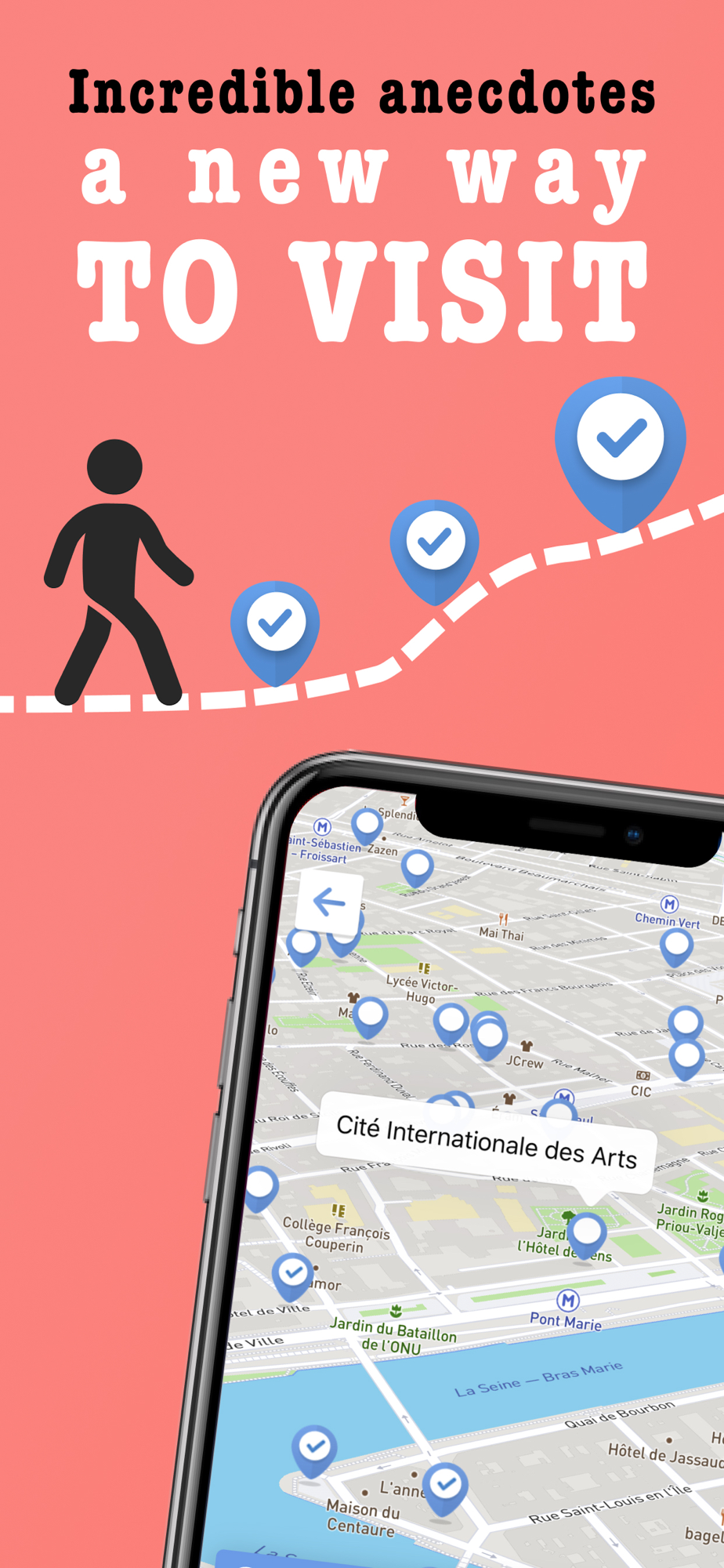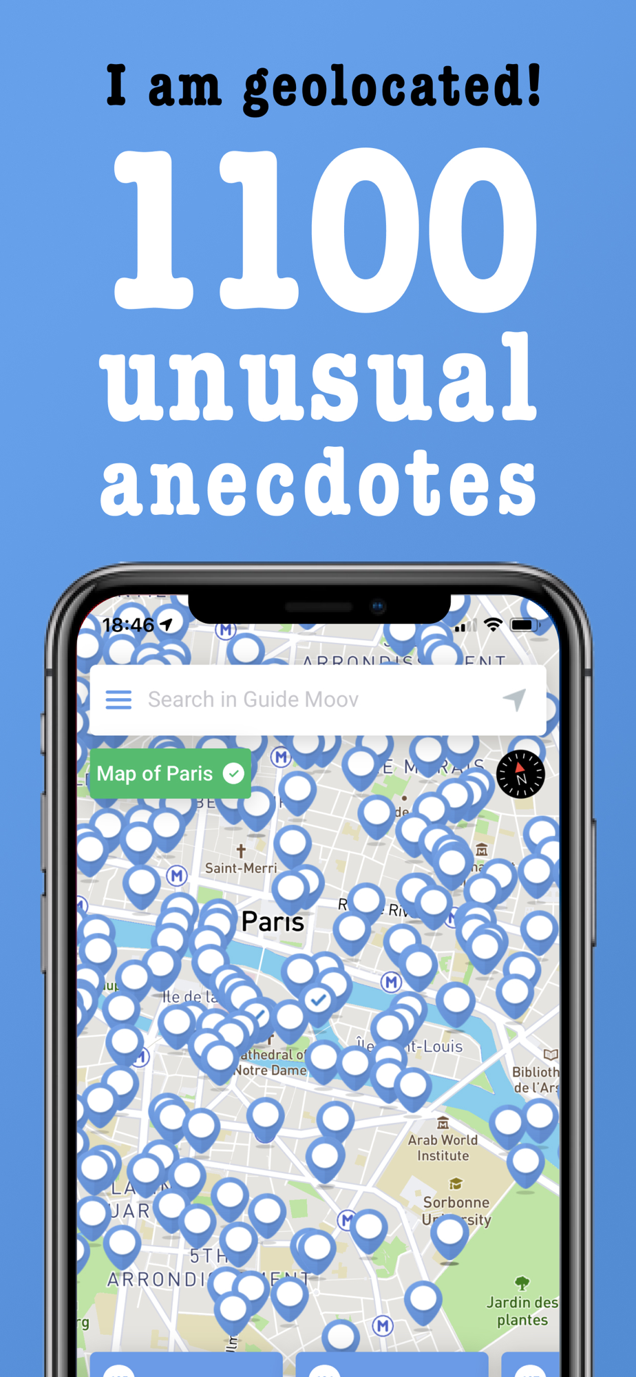 You are geolocated while strolling and anecdotes as surprising as tasty will come directly to your ears. You will finally be able to look around you and understand the hidden treasures of the cities visited.