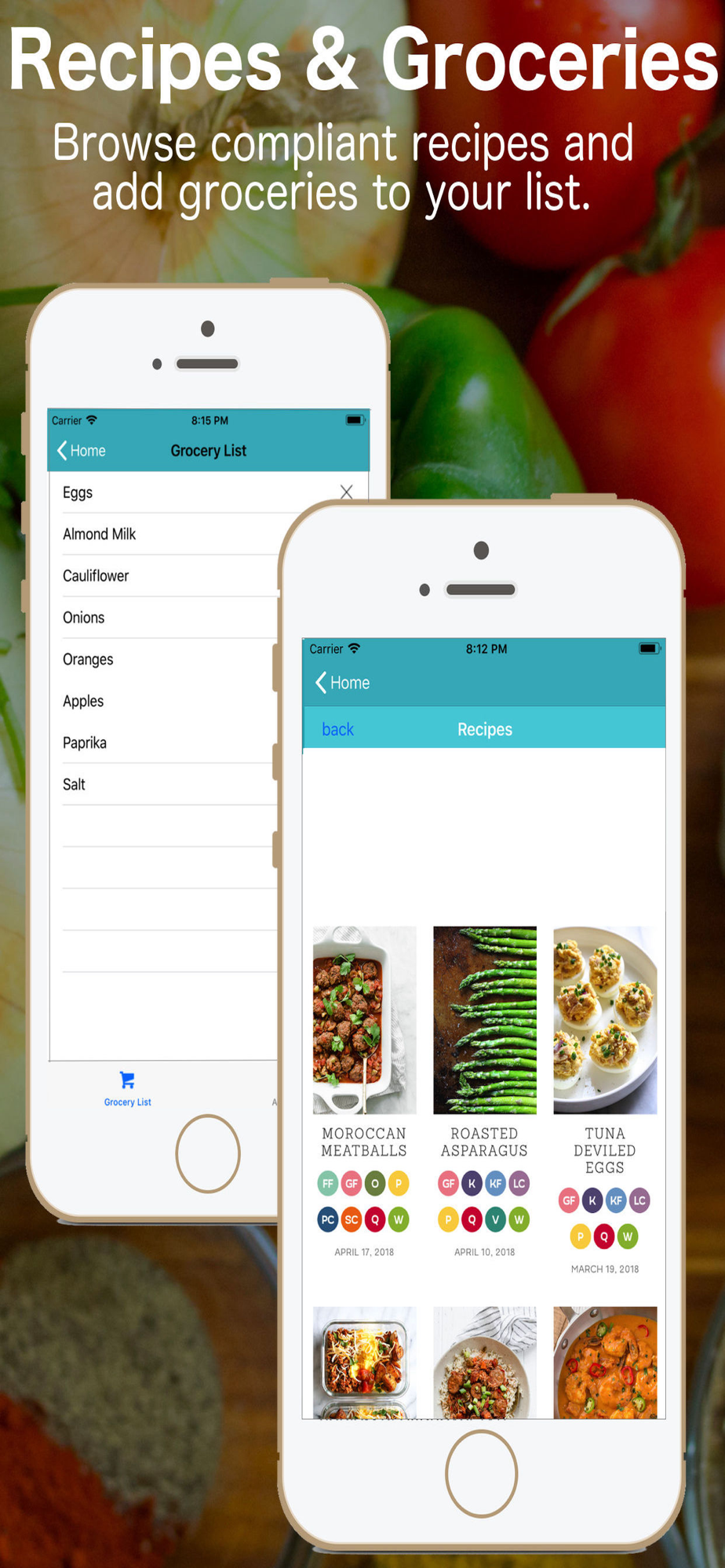 Use the Grocery List feature to easily create and modify your grocery list. Browse through compliant recipes with the recipe feature.