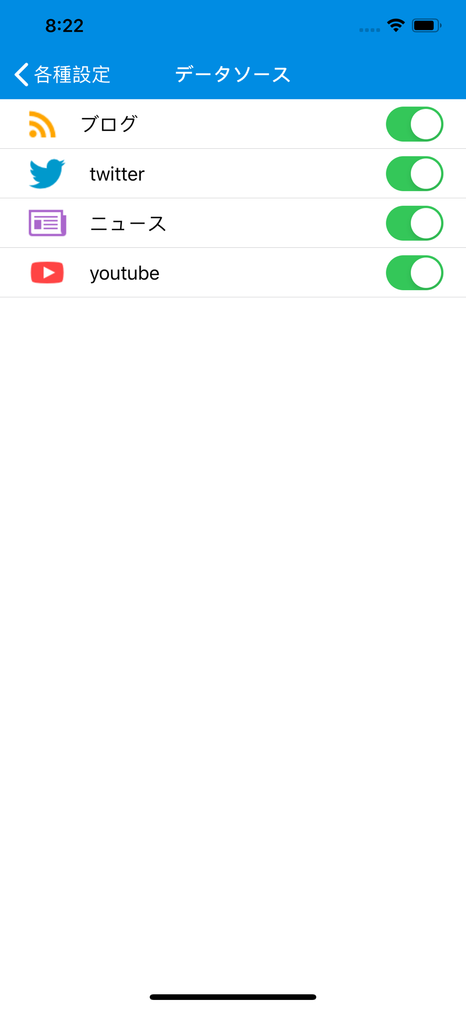 現在以下の情報ソースをON/OFFで切り替え可能です。