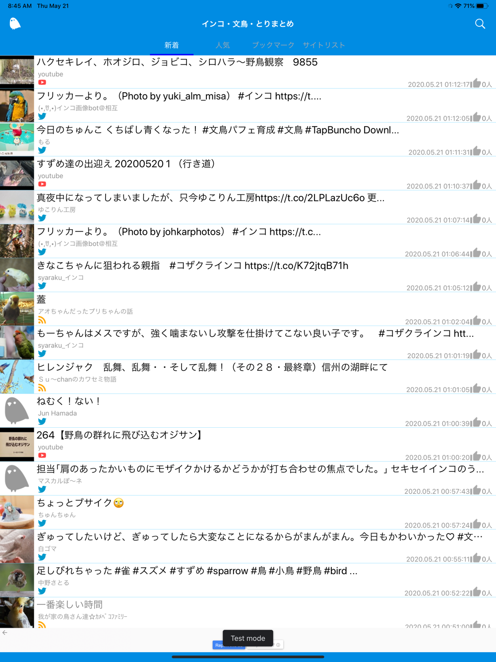 インコや文鳥の最新情報をリストアップするまとめアプリです。