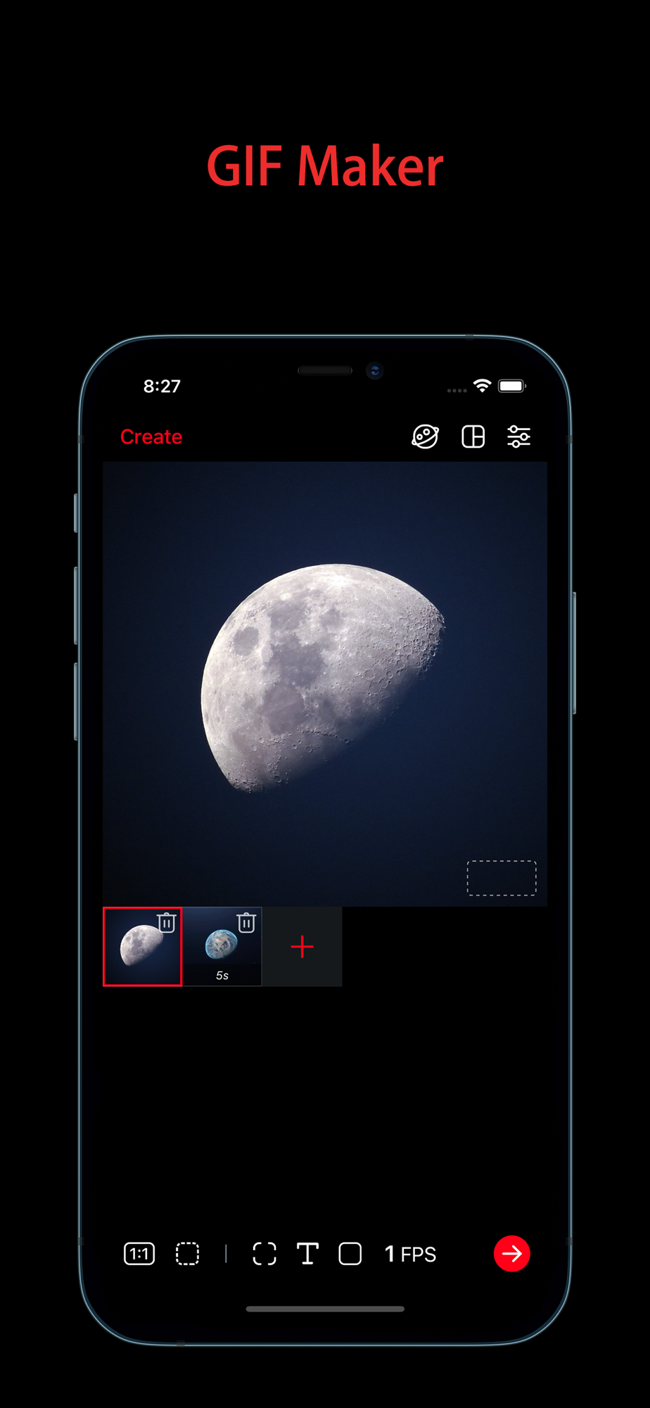 • Add frames to your gif or video.