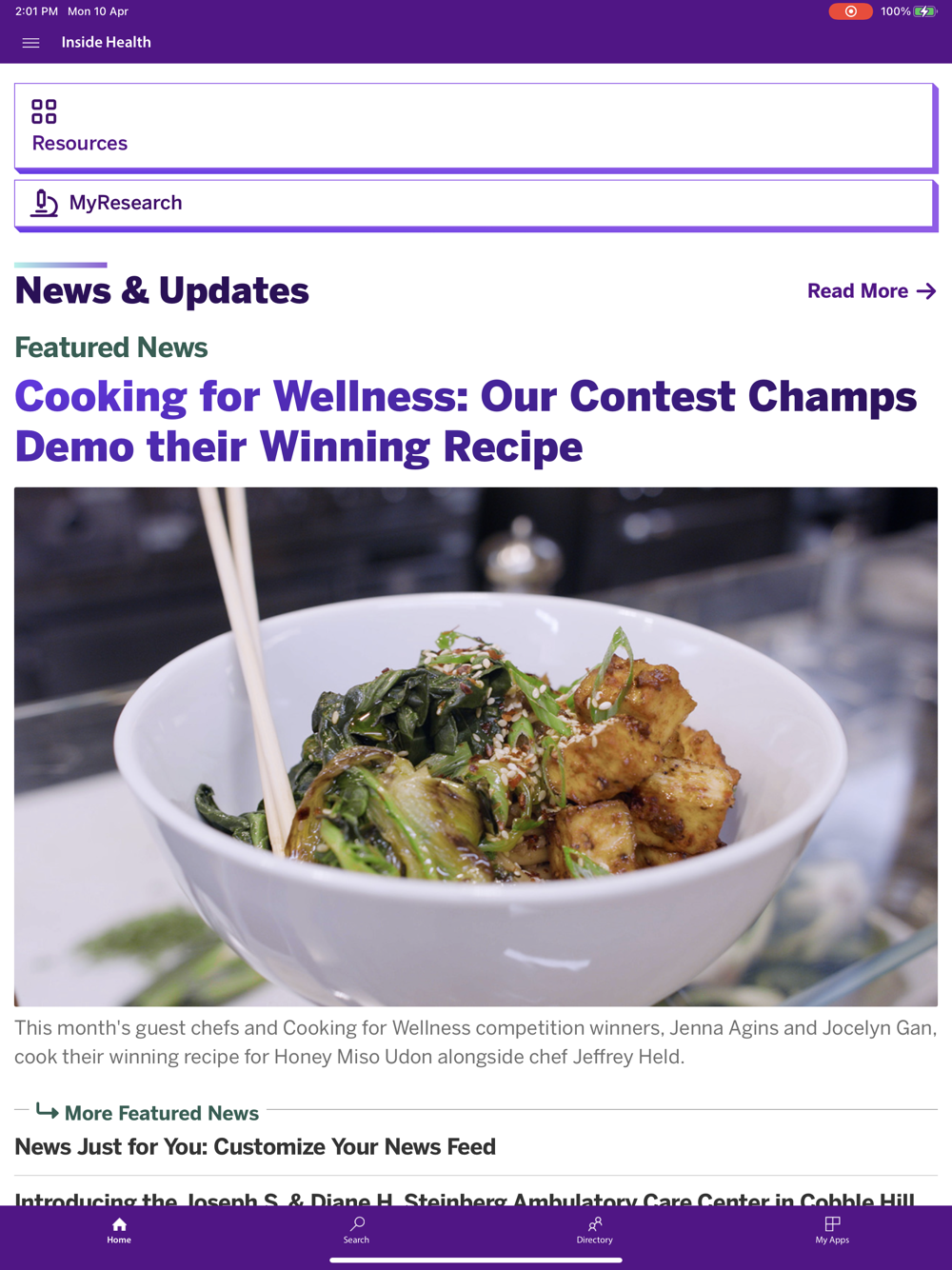 Inside Health is an app for the NYU Langone Health workforce. NYU Langone Health employees can get important tasks done on the go, such as complete open enrollment, access FOCUS training, access manager resources, review pay history, read the latest NYU Langone Health news, and search our directory to find colleagues. This new version of the app provides a mobile experience that offers the same access to internal resources and information as the web version of Inside Health.