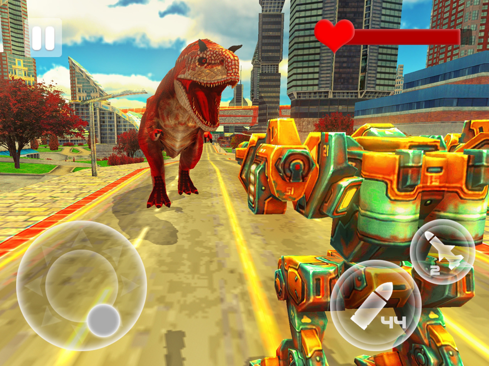 Through time machine dinosaur enter into city and they love to destroy things they are doing the same now! You a Robot Superhero need to rescue colony from destruction in this epic bot sim of robot fighting game.You have war robot with heavy guns and weapons equipped with heavy missile that will blast enemies in seconds .
