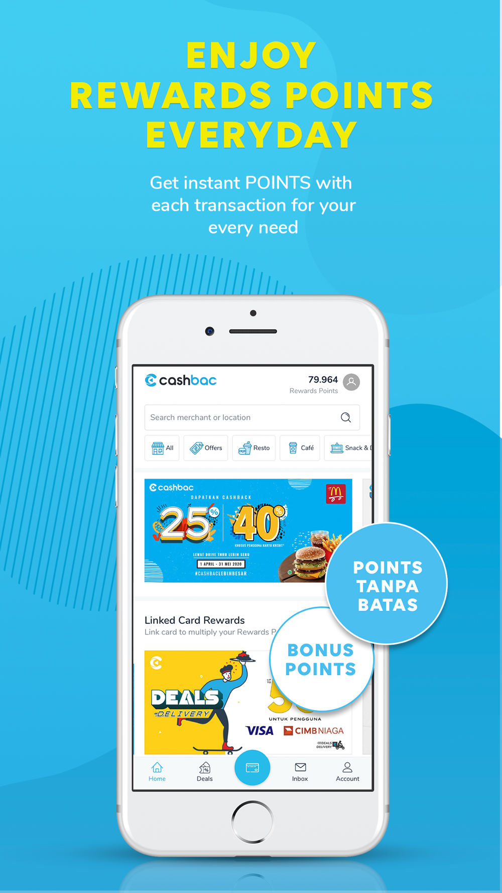 - Get POINTS TANPA BATAS (UNLIMITED POINTS) at your favorite merchants – the more you spend, the more you earn