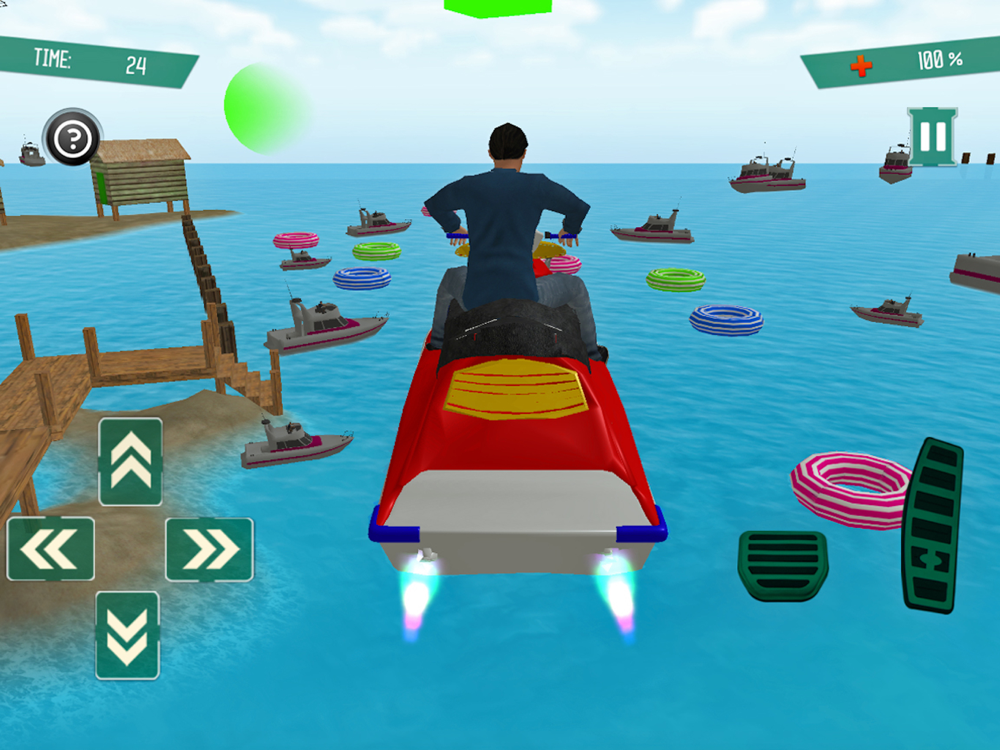 Park water is full of hurdles, be prepared and have you swimsuit ready as you are about to play this epic adventure running and racing game. Fly Jetski 3D is an awesome new 3D Jetski Simulator game, become the pilot and fly your commercial jetski to the destination. Guide and steer your jetski plane through all of the waypoints to ensure you head to the correct destination. This game brings you intense air-to-air jetski combat, how long can you battle against enemy jetskis? Fight and fly the skies to get the highest score and beat all of you friends.