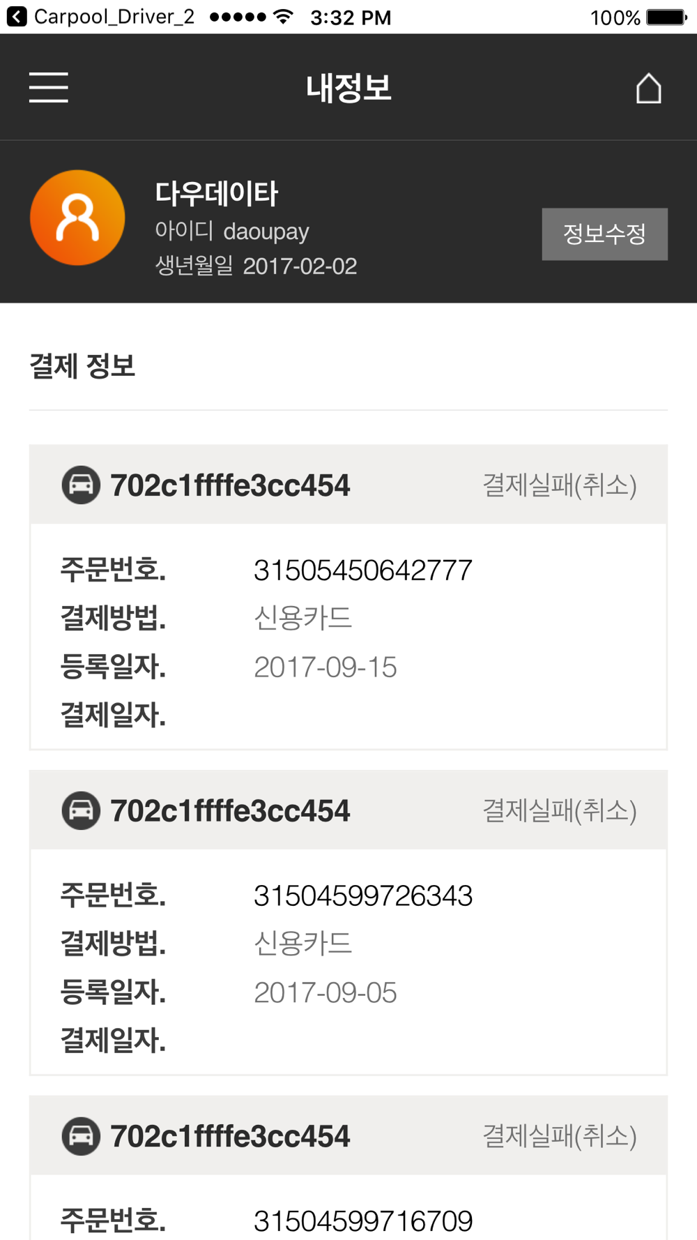 6. 블랙박스 자가진단 정보 ? 블랙박스에서 자가진단시 발생한 고장정보(녹화오류, SD메모리오류, 카메라렌즈오류, 기타 등등)를 실시간으로 안내 받을 수 있다.