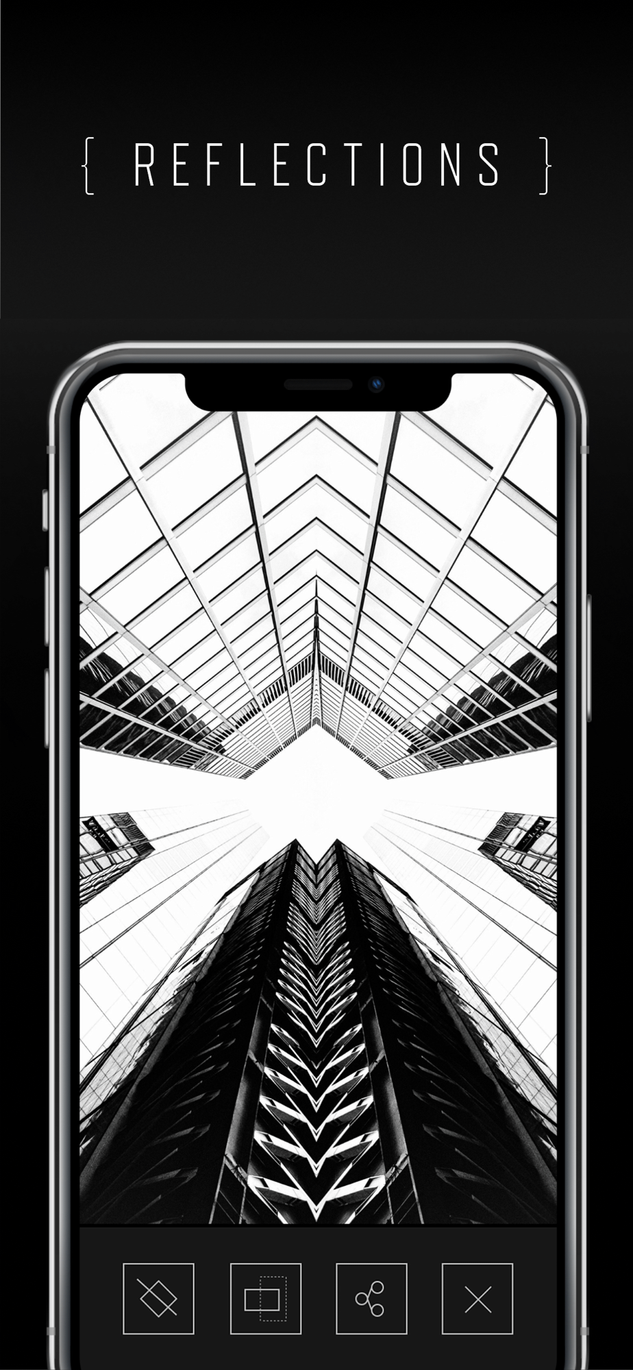 • Photo mirror app - create skew, diagonal and sideways reflections with only a few taps