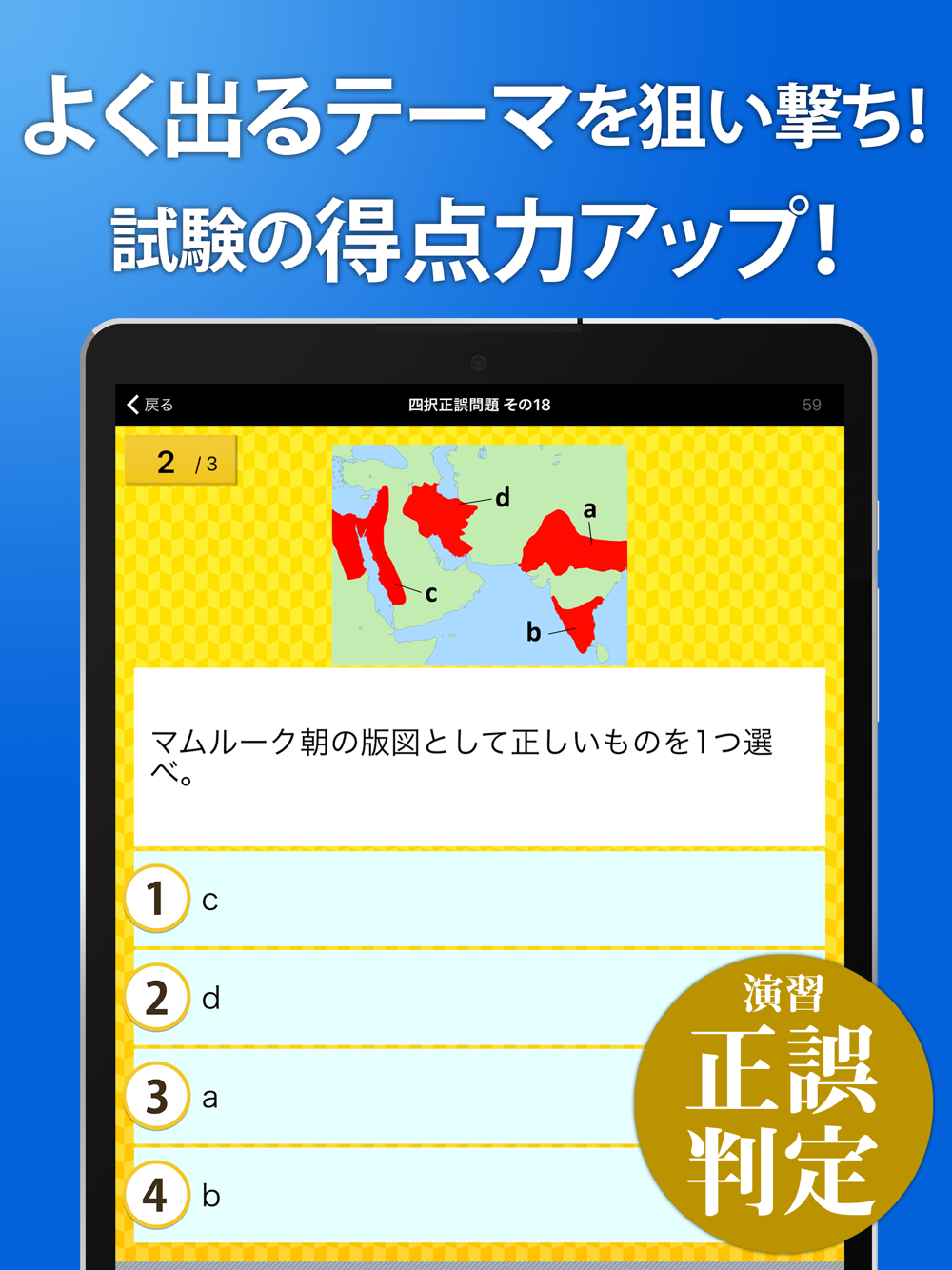 高校の世界史Bや世界史Aの教科書で世界史を学習している高校生や、一般常識問題を学習する大学生、社会人の方にオススメのアプリです。
