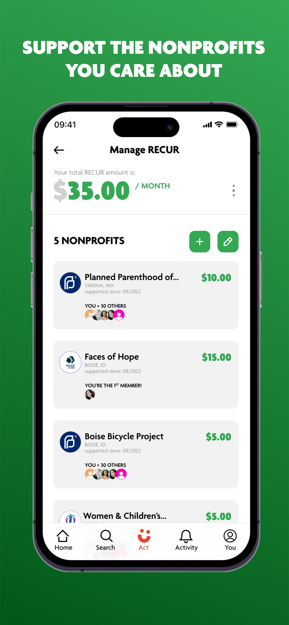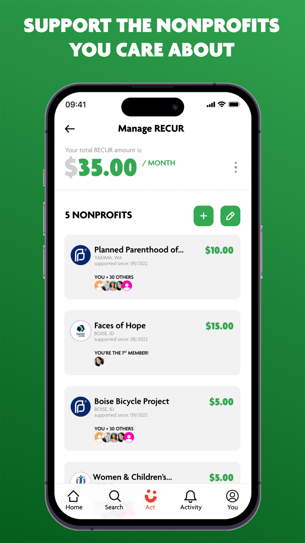- Add your favorite local charities to your profile as an outward expression of the causes you care about.