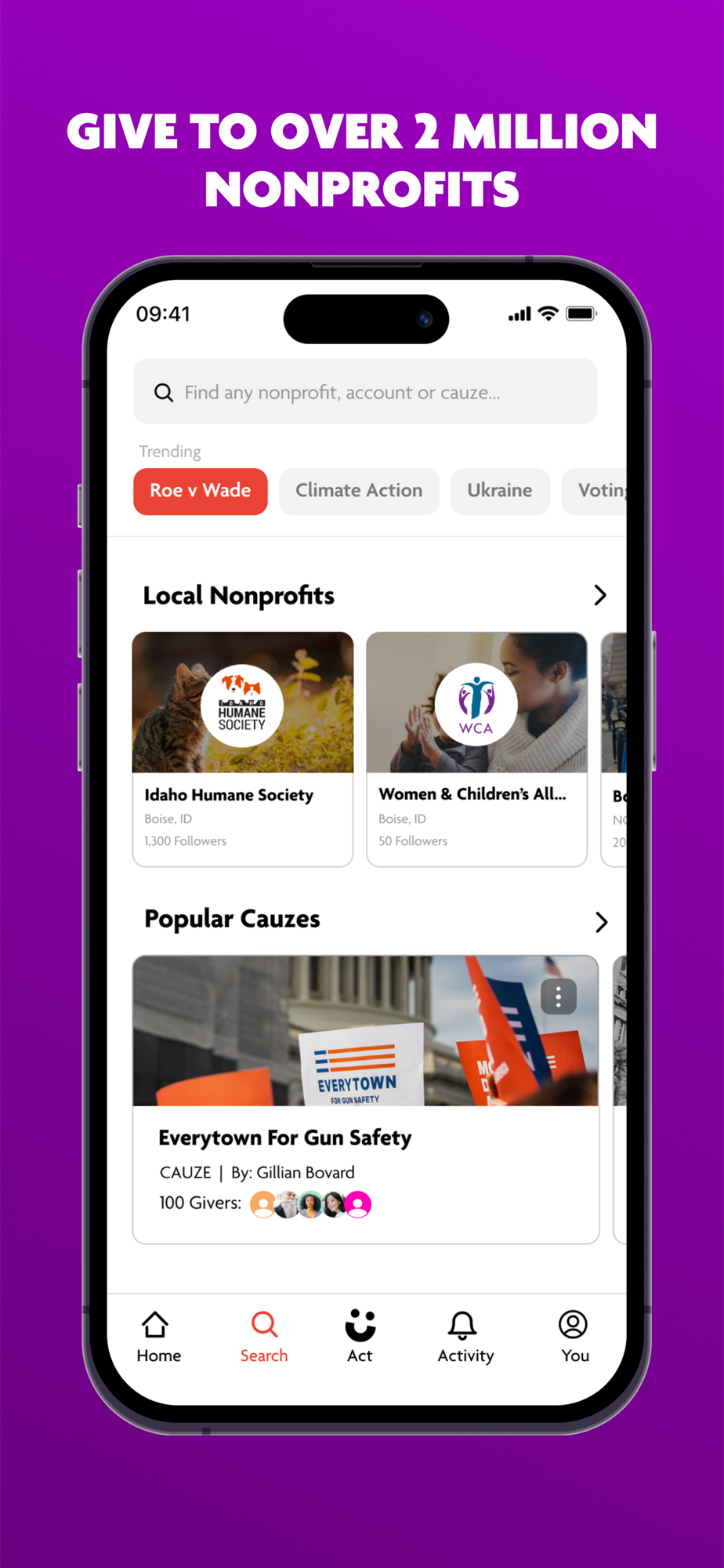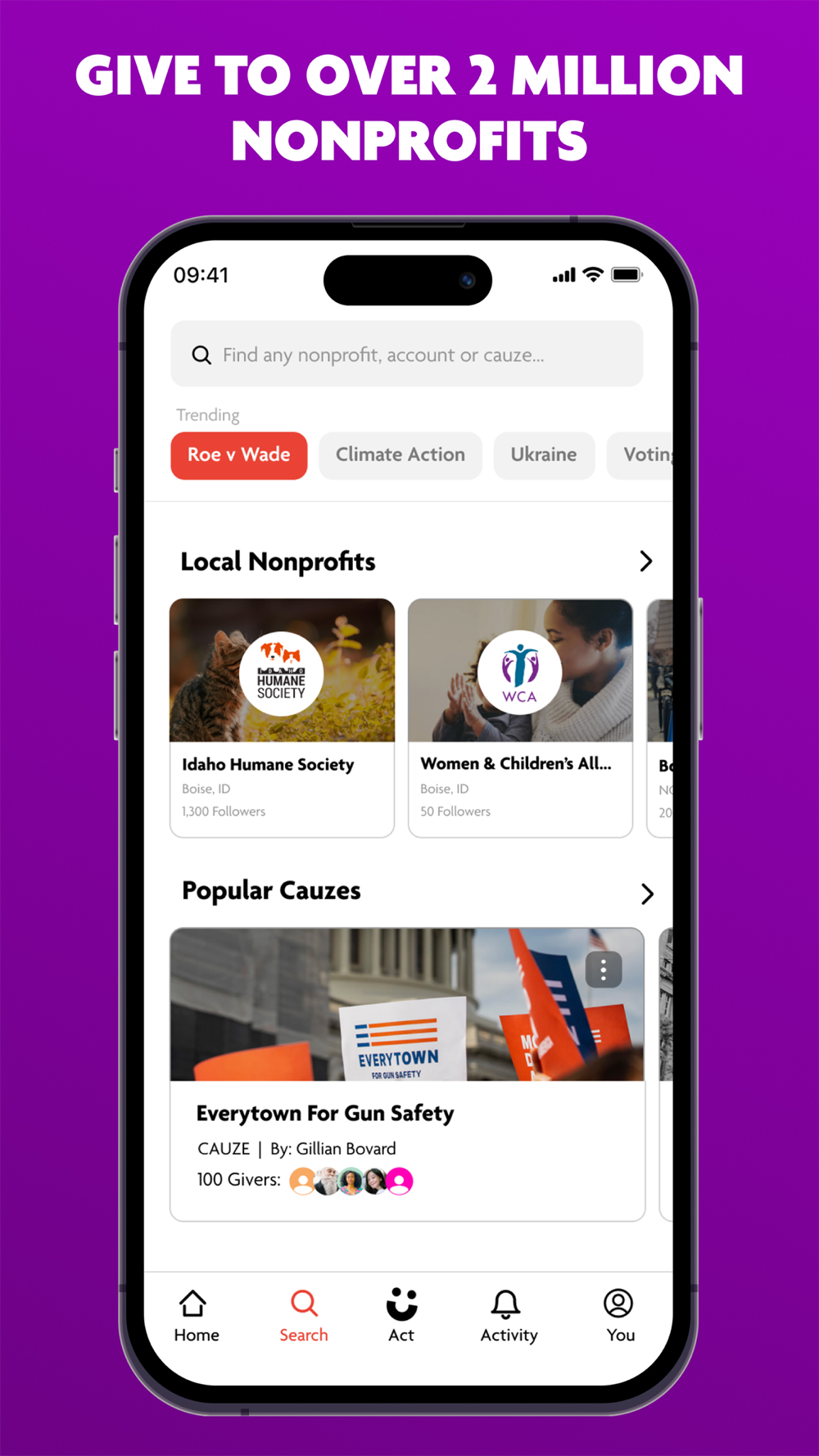 - Search and give to over 2M charities (yes, even the ones in your neighborhood).
