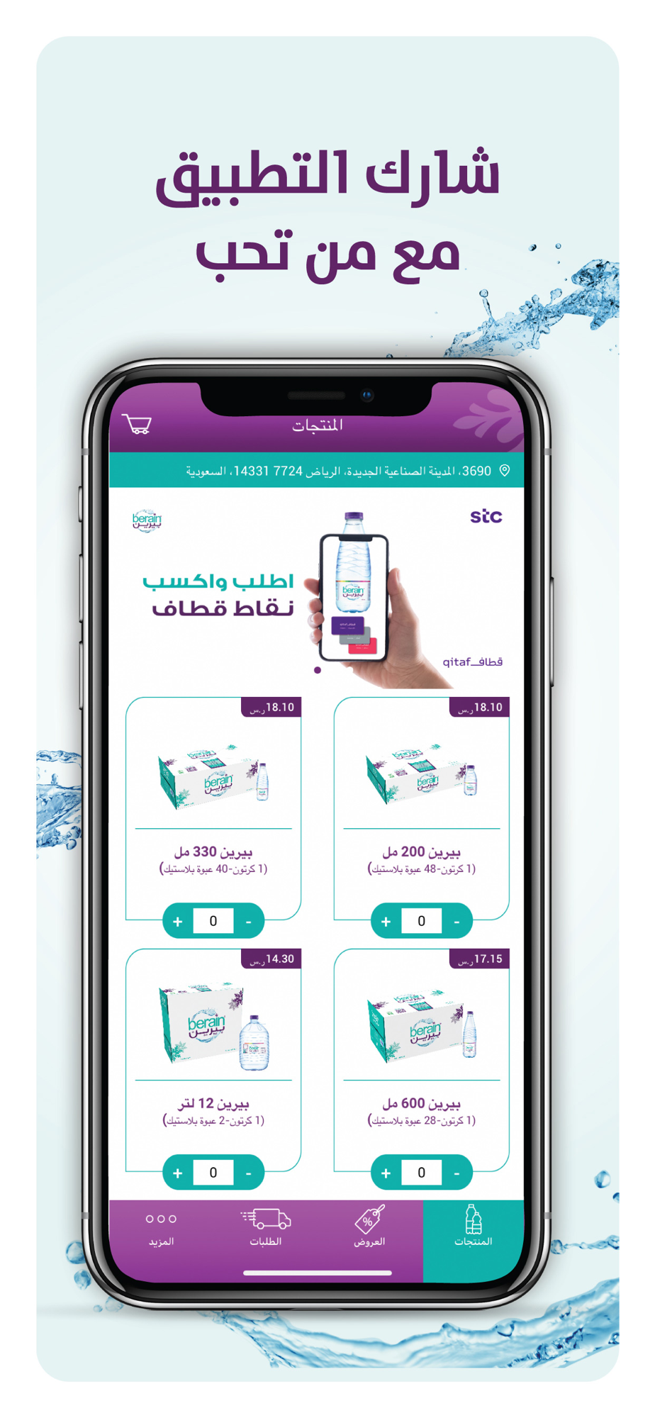 حمل تطبيق مياه بيرين الآن واطلب مياه بيرين عبوات بلاستيك أو زجاج بجميع الأحجام وادفع باستخدام Apple Pay أو بالطريقة المفضلة لديك وسيتم توصيلها لك أو لمن تحب مجاناً في معظم مناطق المملكة خلال يومين عمل.