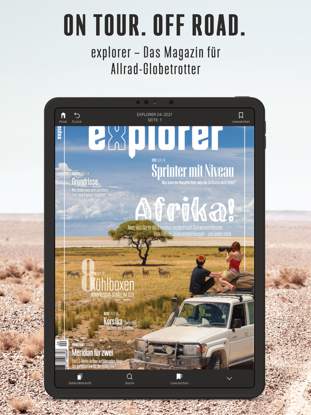 EXPLORER – Die Zeitschrift für Allrad Globetrotter: Sechsmal im Jahr alles zum Thema Offroad Touren, Reise und Expedition mit Wohnmobil, 4x4 Lkw oder Geländewagen.