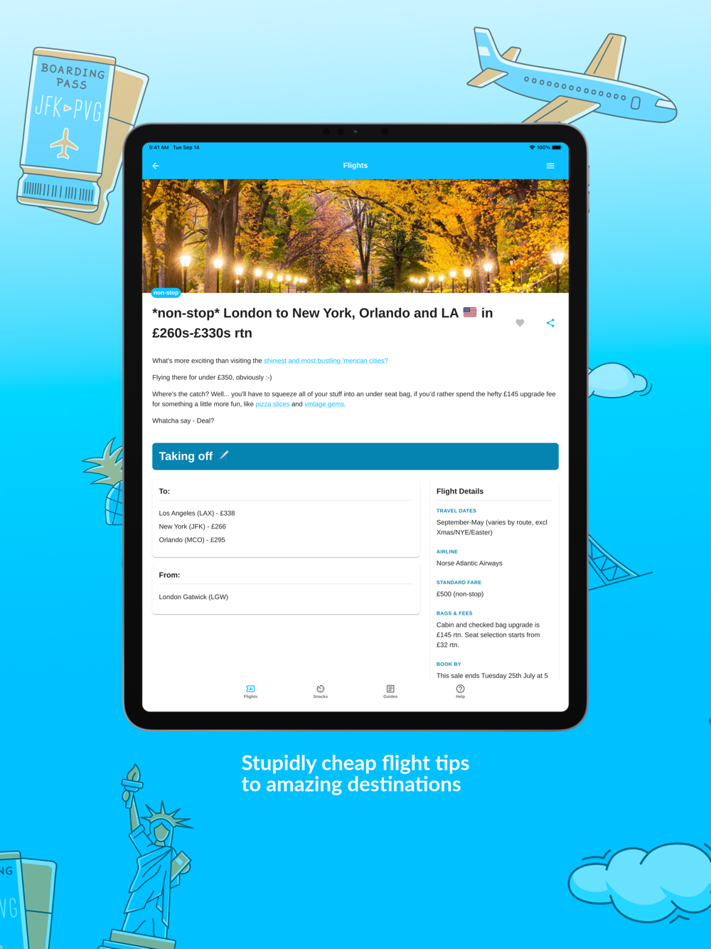 A paid Premium version of the app is also available for upgrade within the app. For a small optional fee, you can get 4x more flight alerts, tailor which airports you see trips from, and receive special short-haul trip round-ups.