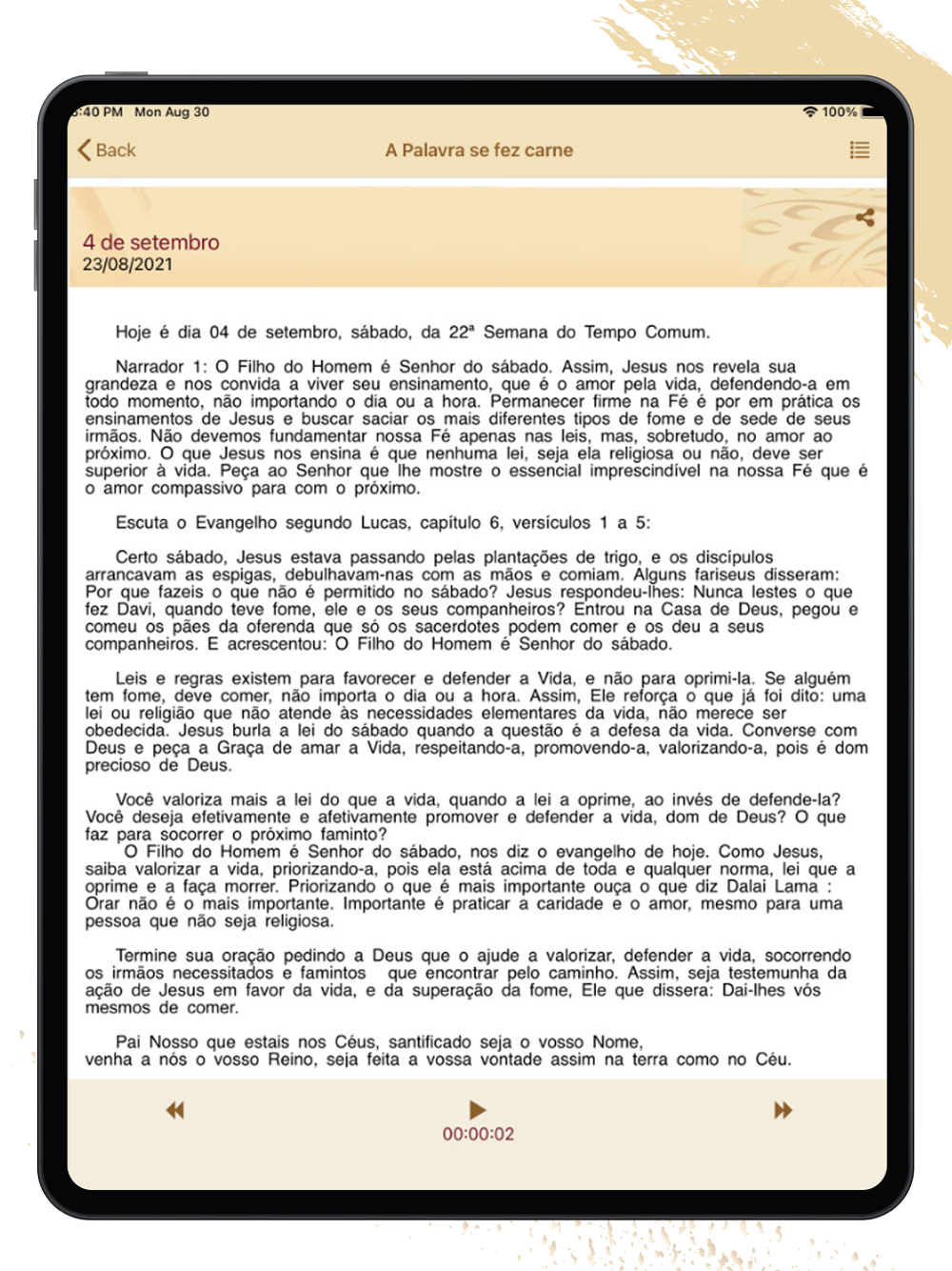 - Fazer orações diárias com os áudios "A Palavra se fez carne"