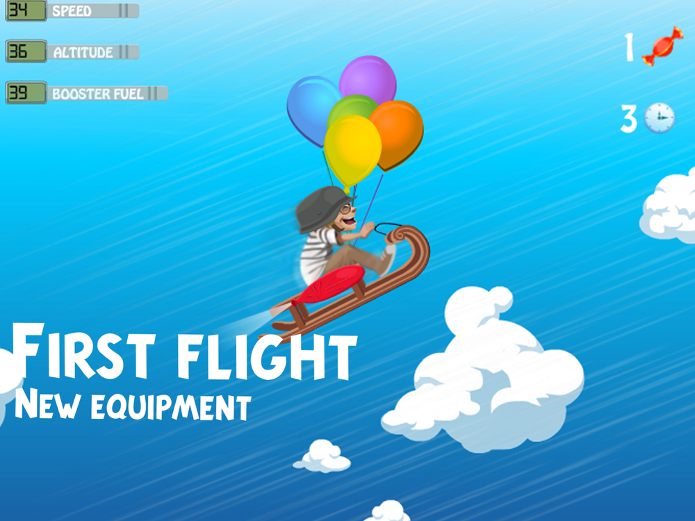 Climb into the craft,take off the ground to fly.Pay attention to the wind,that can take you fly further.