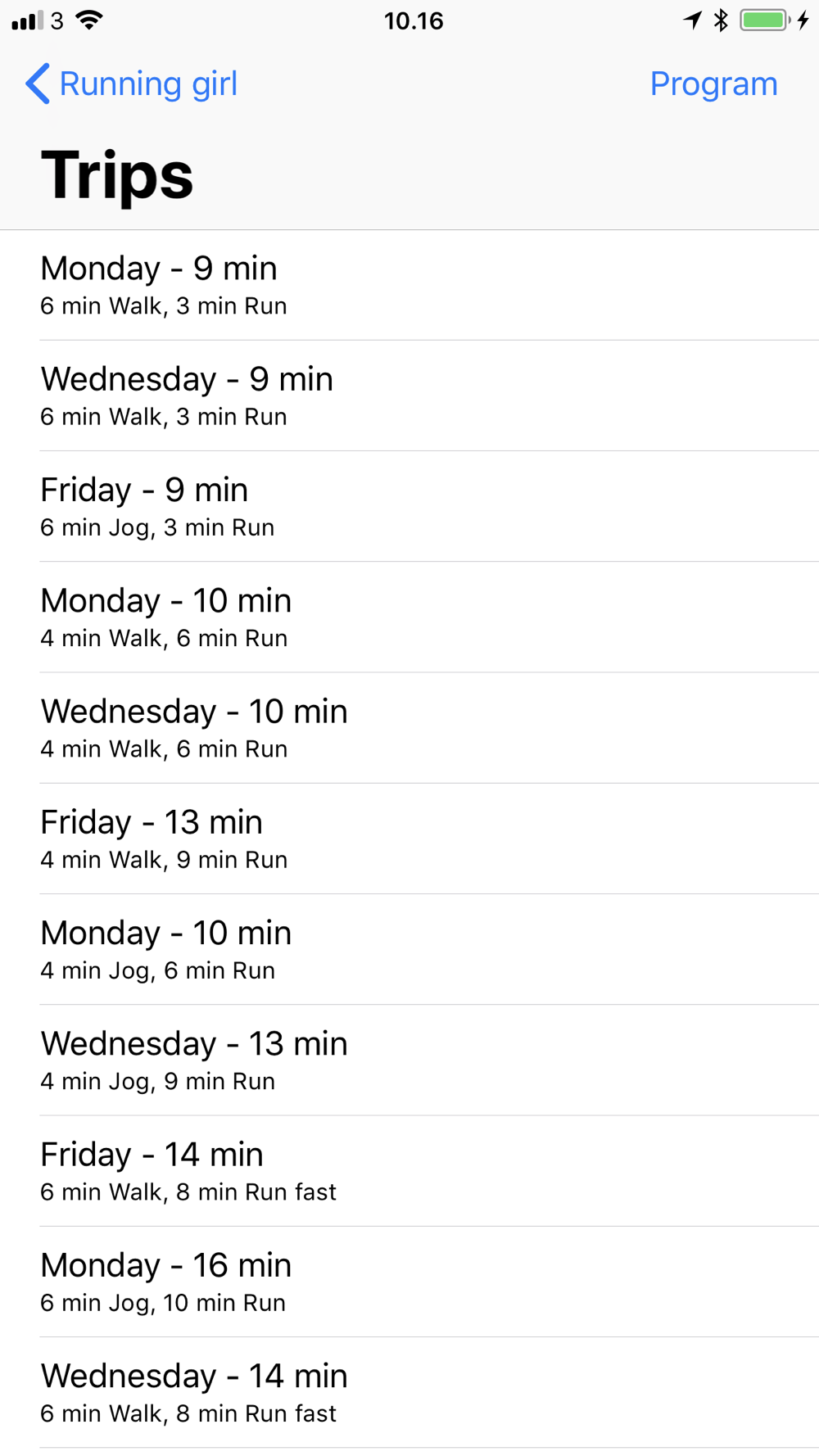 The free version there is available at the “app store” have a 12 week workout plan, with 3 trips a week. enabling you to run at least 4 miles without break! if you follow the workout plan.