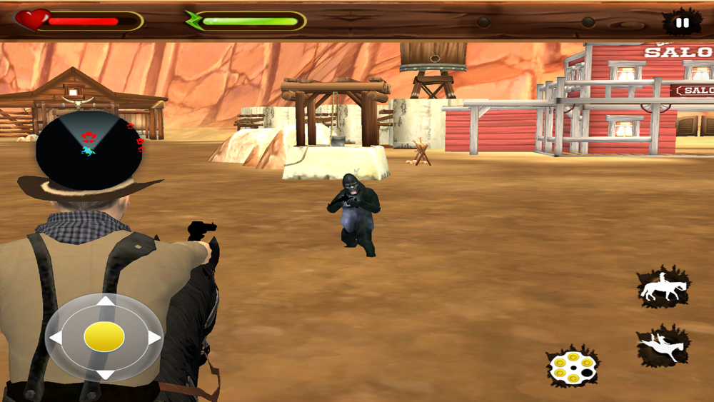 你好!! 牛男孩欢迎这个独特的射击游戏,并成为主人瞄准和射击致命的猿。 射击猿和目标,以提高你在西部城市狂野中的技能。 在这个第三人称射击游戏中,发现充满牛仔,土匪和野生丛林大猩猩的巨大的野外西部城镇。 享受骑马作为一个牛仔,并且进入狂野的气氛,以尽可能多地杀死许多丛林大猩猩。