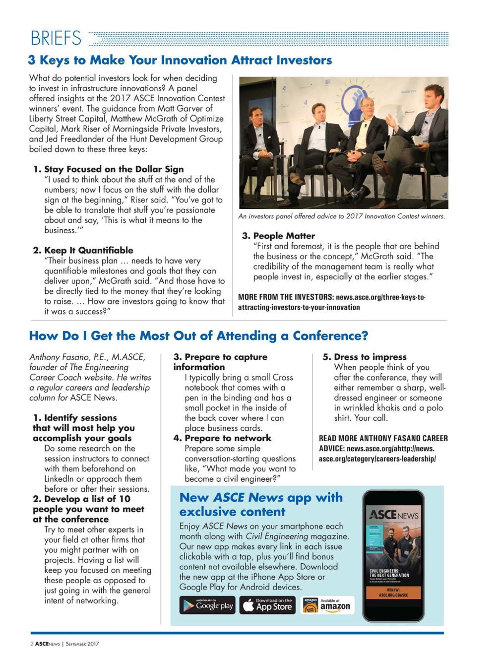 “ASCE News” embodies the variety and significance of ASCE’s initiatives, highlighting news of the Society, providing leadership perspectives, promoting the profession, and exploring career growth. Through engagement in the great issues of the day, ASCE members prepare themselves to fulfill a common vision: Civil engineers as global leaders building a better quality of life.