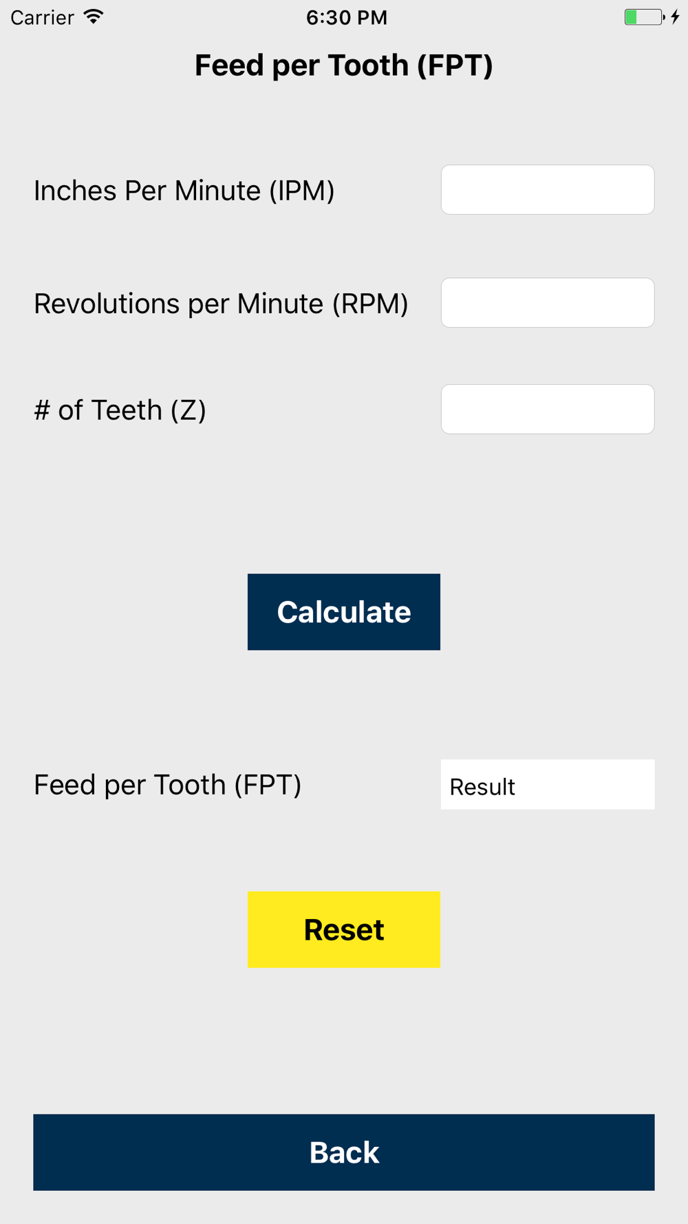 A simple to the point app for calculating feed rates and speeds for machinists.