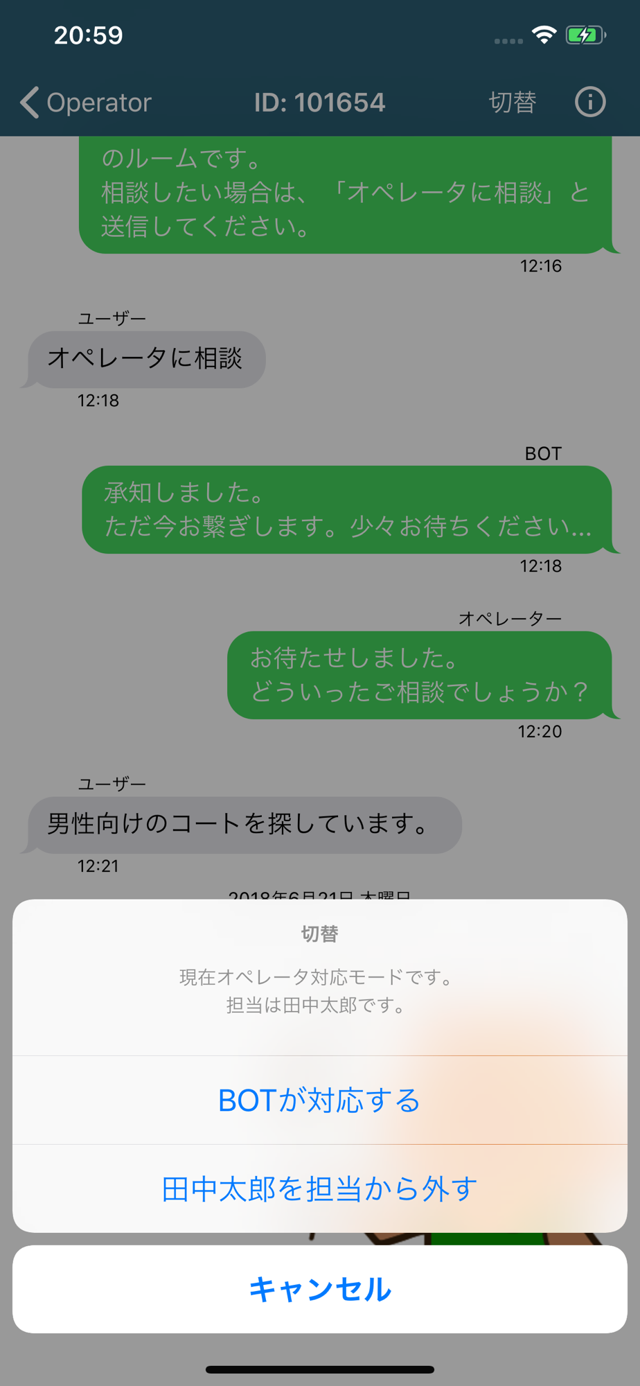 ・あなたがオペレータとして対応し終わった後はBOTモードに切り替えることができます。