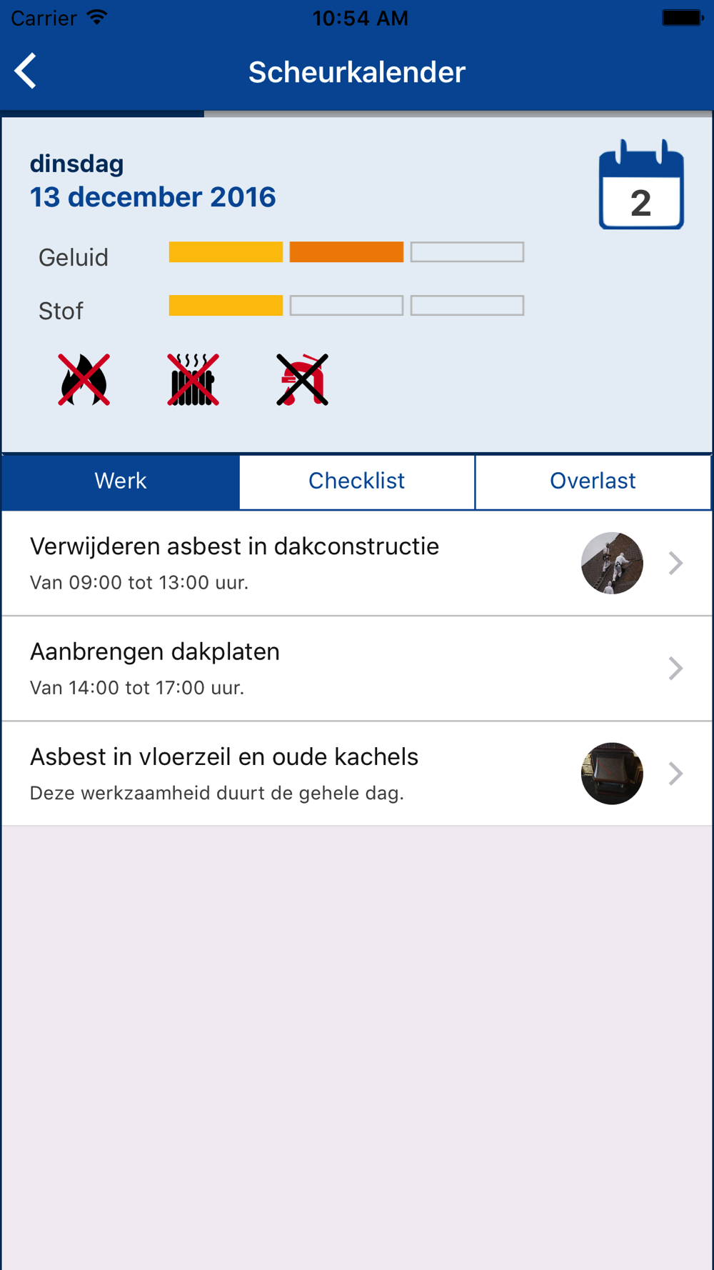 Weg met het papieren boekje die u kwijt kunt raken. Nu alle informatie over uw renovatie of groot onderhoud vertrouwd bij u op de telefoon of tablet. Blader bijvoorbeeld door de scheurkalender om te zien wat er gaat gebeuren, wat u kunt doen om de mensen van de bouw het gemakkelijker te maken of welk overlast u kunt verwachten.