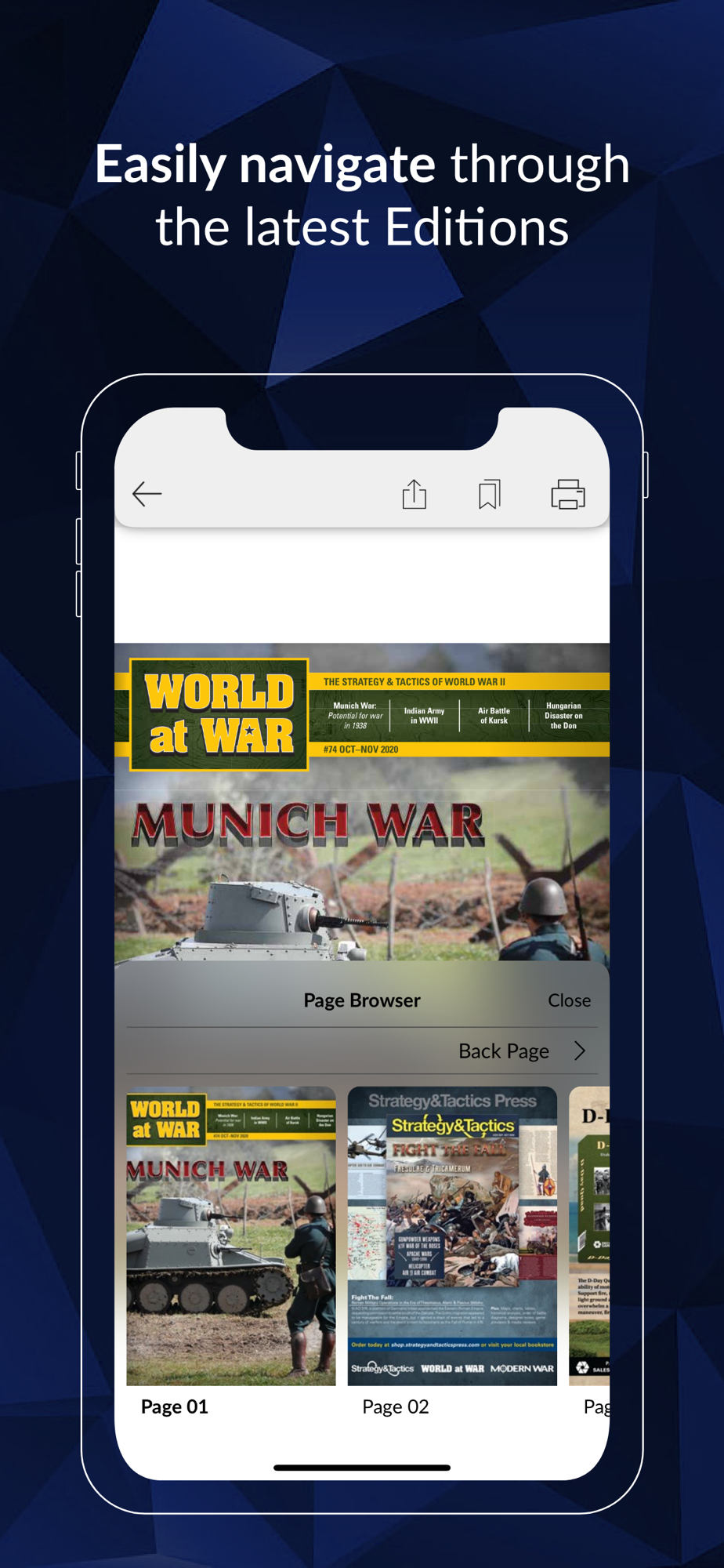World at War magazine focuses on all aspects of the greatest conflict of all time, World War II. World at War brings the Strategy & Tactics style to a focus on World War II. This unique approach goes in-depth on World War II, digging deeper into battles and campaigns, and seeking out the unusual and little known events of this vast, worldwide conflict. All feature articles are copiously illustrated with maps and photographs, with shorter articles focused on the interesting and often surprising details and events.
