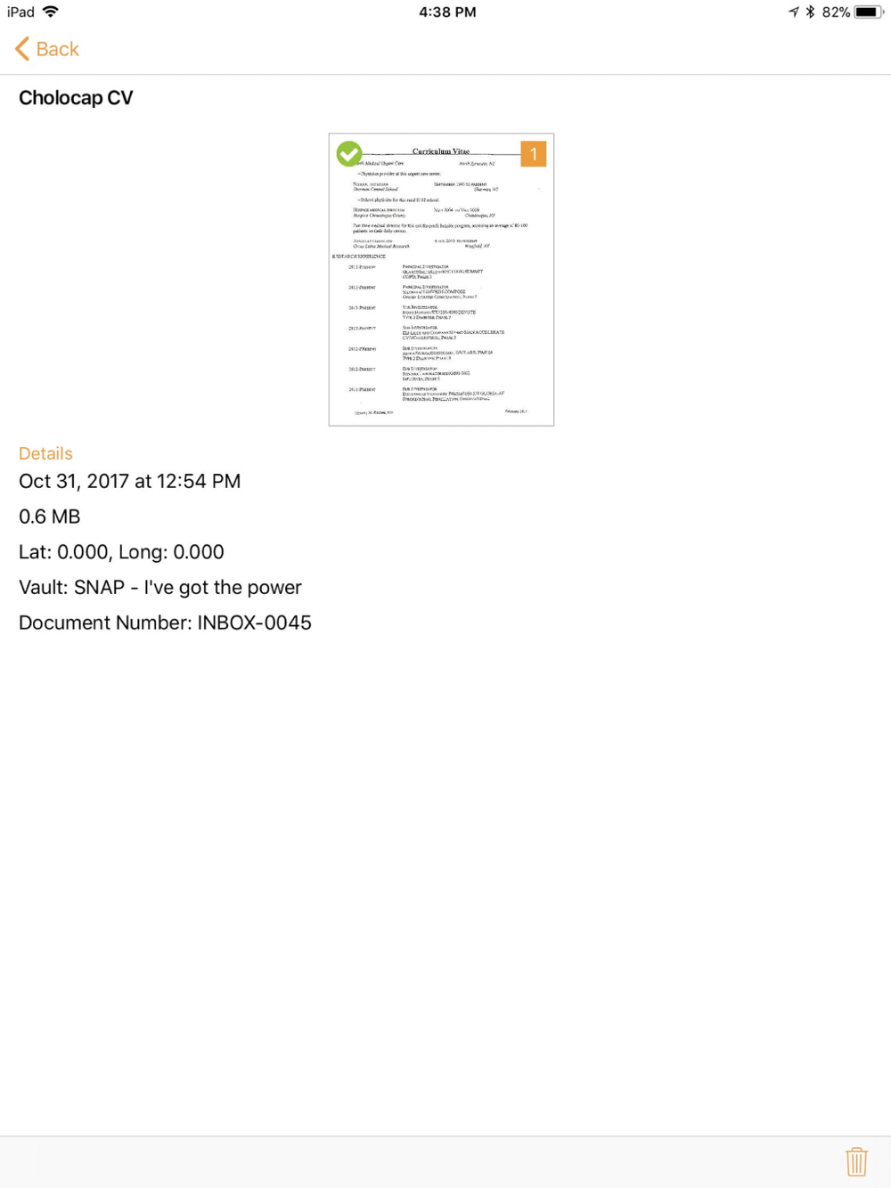 Veeva Snap is a complementary application to the full Veeva Vault application. It provides the capability for users to scan paper documents using the device camera, edit scanned pages and apply image enhancements technology to generate a complete document that is uploaded directly into the Veeva Vault.