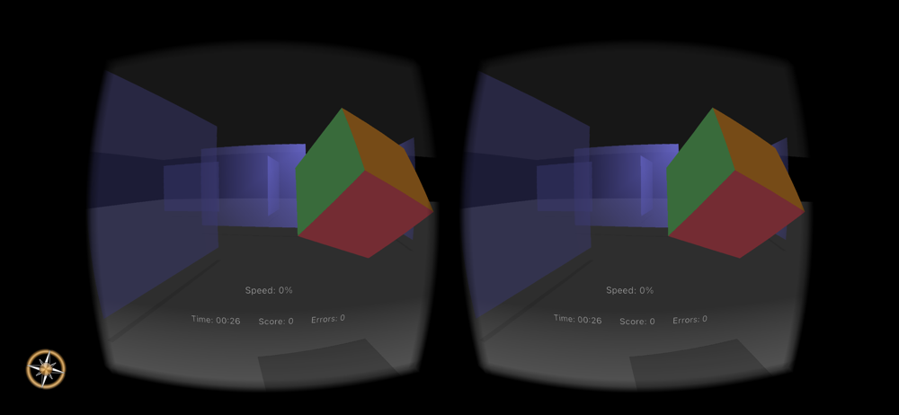 Lean your body forward and back to "walk" around. Lean your body left & right to sidestep. Earn points by finding and occupying cubes. Lose points by hitting walls. Wear headphones for directional 3D audio and have fun!