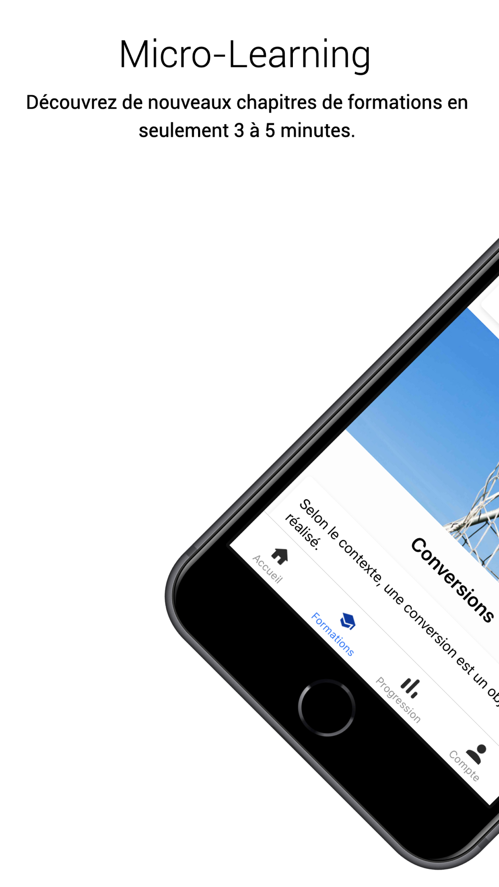 - Discover new content regularly, at the pace you want and according to the trainings shared by your trainers,