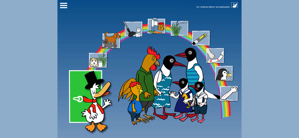 ”HC And - Allergi” er udviklet i et samarbejde mellem H.C. Andersen Børne- og Ungehospital, Odense Universitetshospital, indlagte børn og deres familier og 10:30 Visuel Kommunikation.