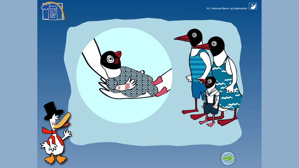 Børn i denne aldersgruppe lærer og erkender ved leg og konkret information. Indlagte børn kan hurtigt blive “fyldt op” med en masse information. Derfor er HC And bygget op af korte sekvenser i børnehøjde, så “nye” kan starte her.