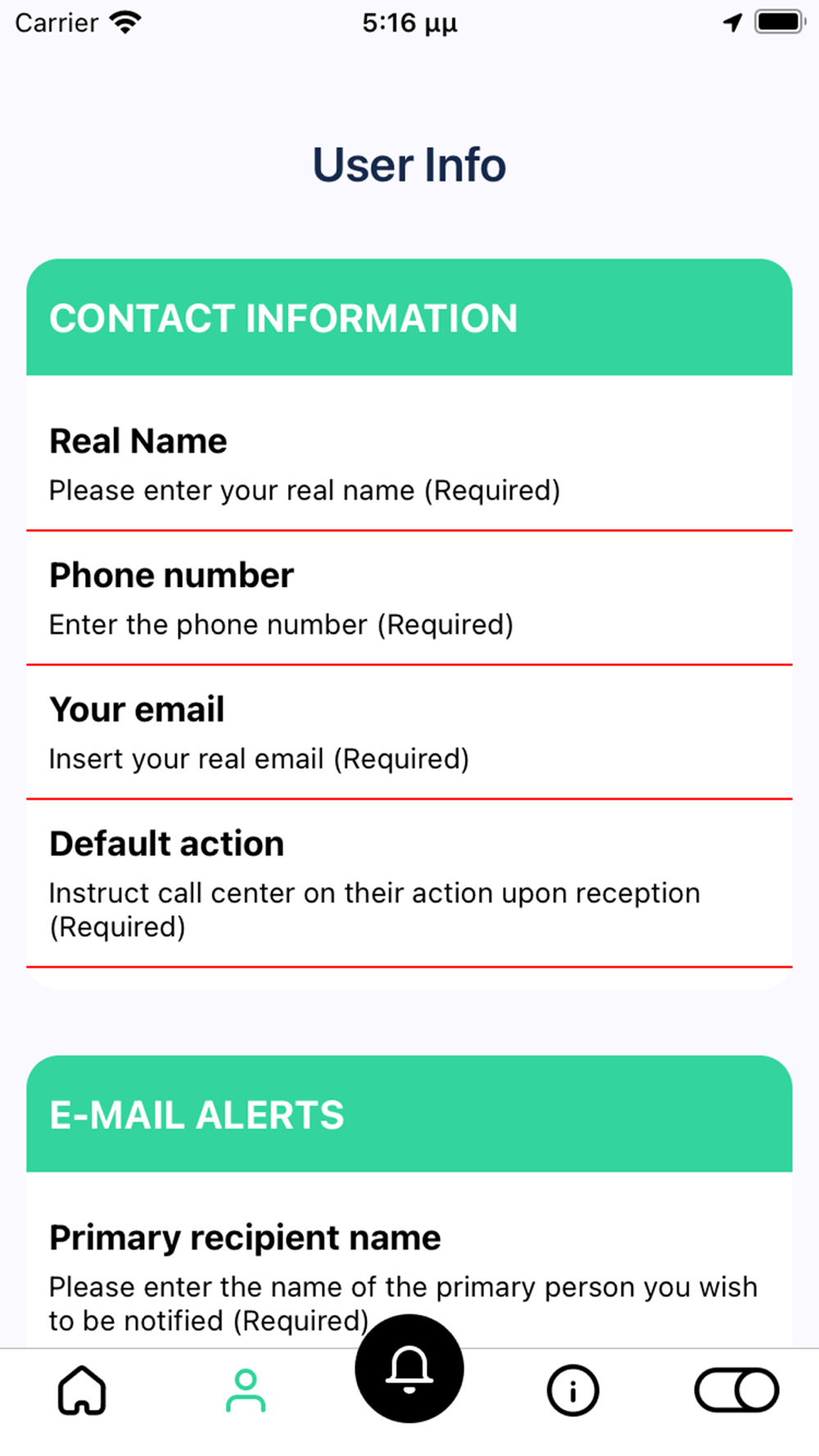iAlert PLUS app will send manually or automatically generated panic alerts signals to SOC, including your position, relatives telephone numbers, a predefined message with instructions and a short voice message.