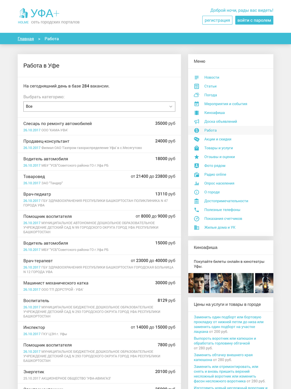 - работа (местные вакансии);