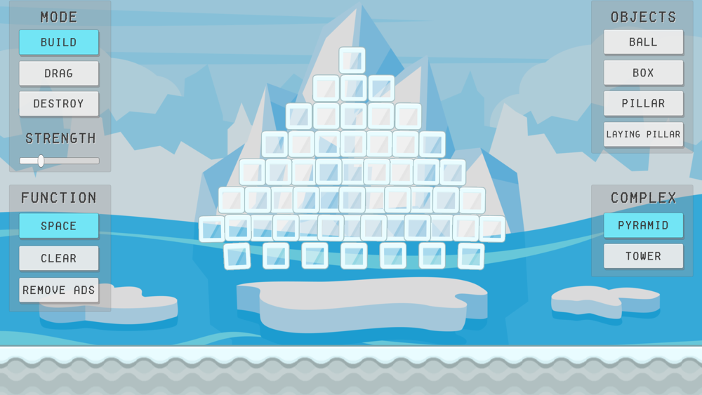 Spawn, throw, build and destroy objects in a fun and cute 2D physics sandbox game in an arctic world!
