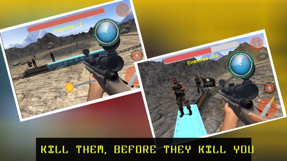 Download the latest release in train shooting games & experience the thrill of being a skilled marksman. You are agent Thomas, a paratrooper, assigned on a train sniper duty to take out hostile terrorist attack group who have hijacked a runaway train with hostages. Locate them with your partner on a Heli & accomplish your agent rescue mission by saving the hostages. Aim with your sniper crosshair & use shooter skills to kill all terrorist in multiple progressive levels in this train sniper shooter 3d game